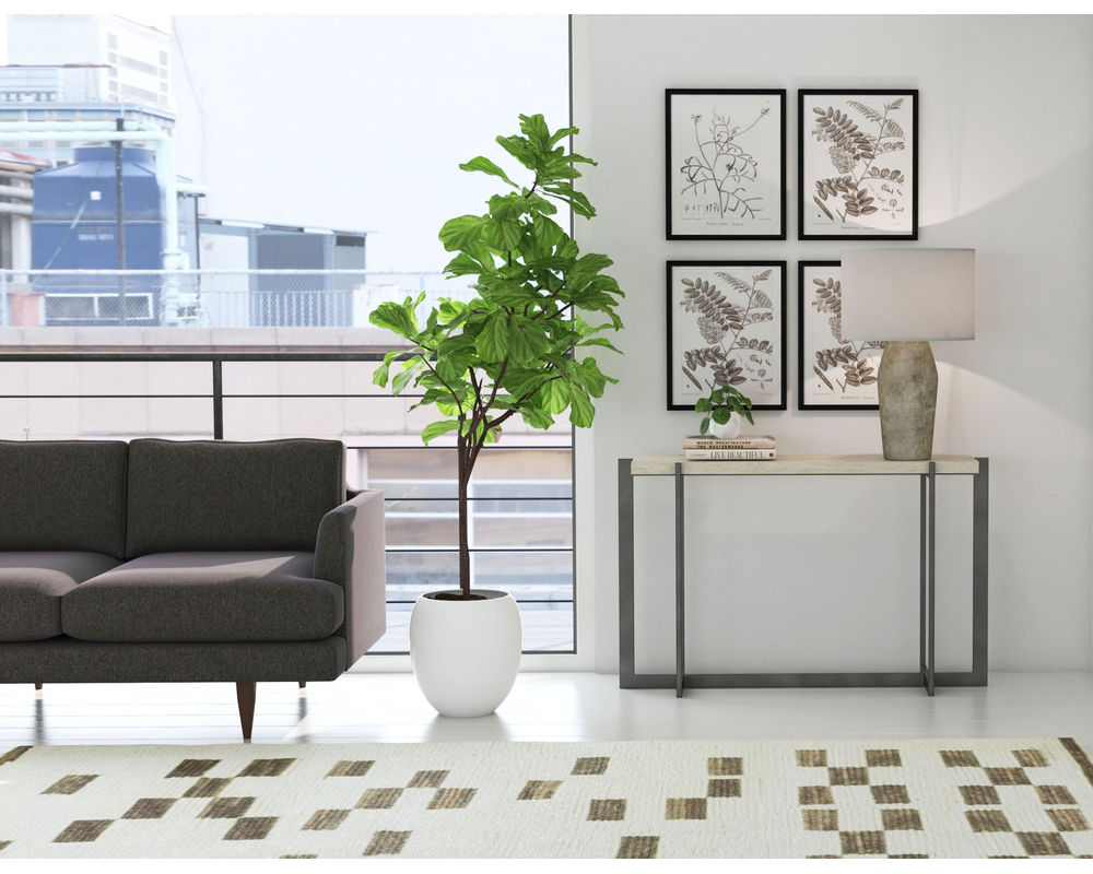 Console Table is a modern silhouette with a White Travertine Stone top 1 / 3