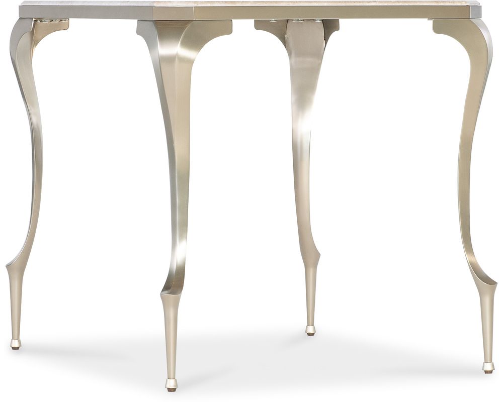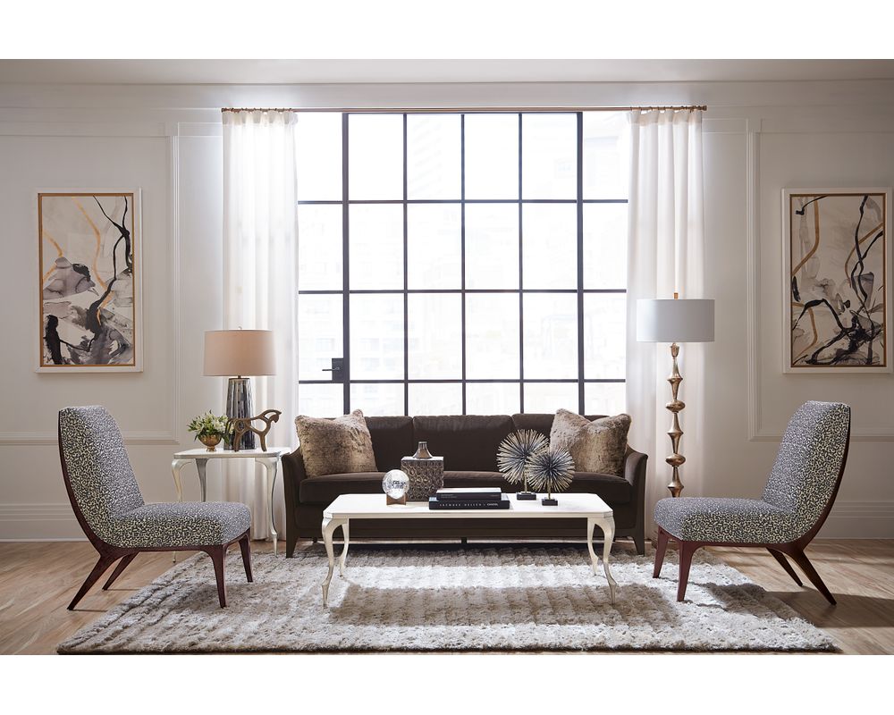 Hooker Furniture's Bella Donna collection is characterized by its elegant forms, rich with shape and movement. Channeling Sophia Loren's timeless sophistication and style as its muse, Bella Donna appeals to the classic consumer but with a little "edge" to their design style. Caviar, the primary finish for Bella Donna, has a deep translucent tone on rich cathedral cherry veneers. Akoya, representing the purest white pearls in the world, is a perfect accent finish, adding sophistication and a bit of glam. Unique design details include reeding on selected pieces that create a "curtain effect," reverse breakfront serpentine silhouettes, glass tops, and exposed metal legs. Adding the finishing touch, this home collection features custom-designed hardware in a champagne finish, including traditional and modern forms.
