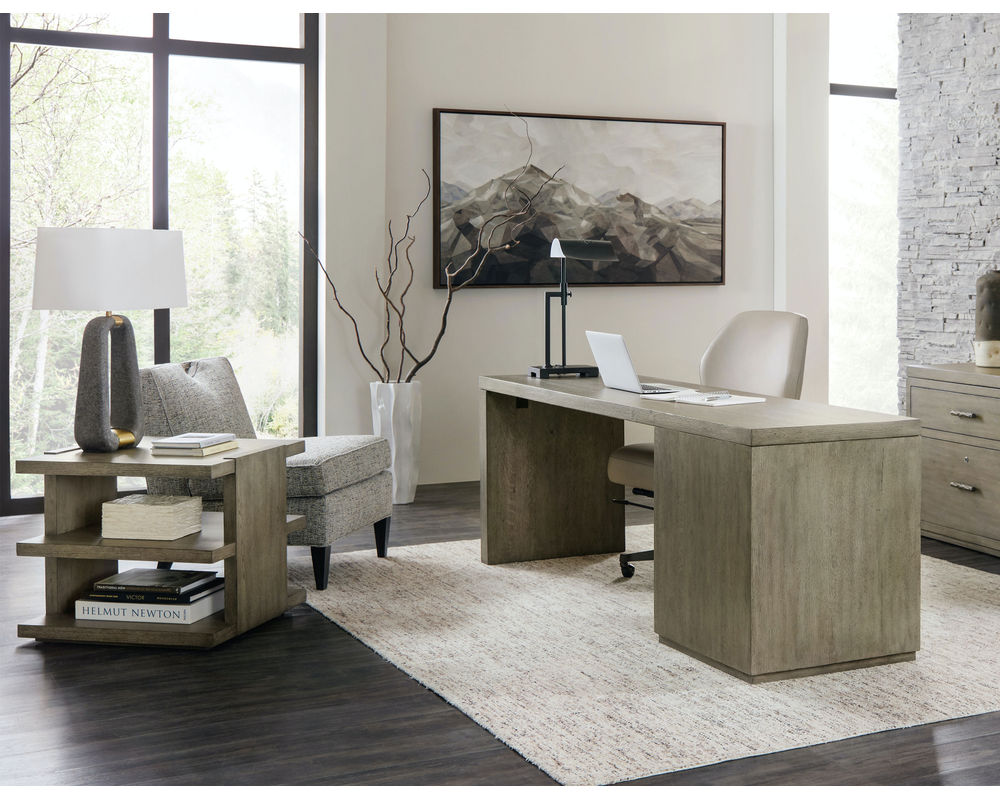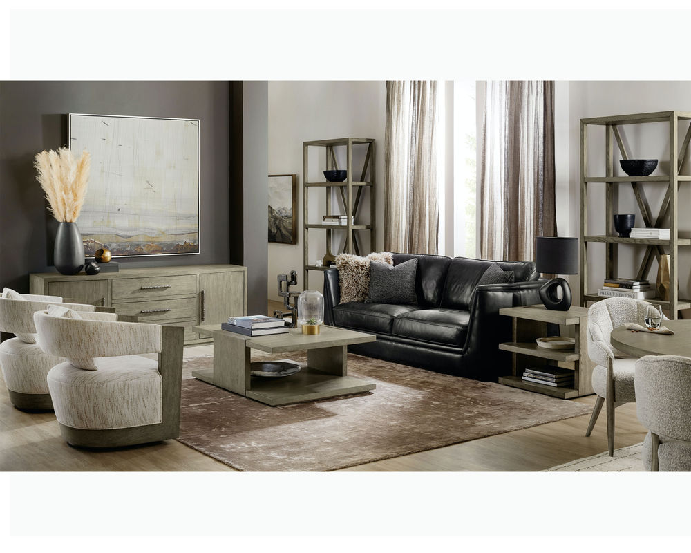 Capturing the essence of nature’s organic color palette and the aura of a rustic mountain cottage, Hooker Furniture introduces the Linville Falls collection. The whole home collection is designed for younger consumers looking for casual and contemporary furniture. Characterized by its rustic, weathered finish and clean lines paired with organic grain patterns, Linville Falls is constructed with split oak solids and veneers and has an overall organic aesthetic. It is featured in a soft Smoked Gray finish mixed with a Charred Black finish that is achieved through Shou Sugi Ban, a Japanese technique that creates an elegant burnt wood look. Its moderate scaling and fresh silhouettes offer a refreshing juxtaposition mixing old with new.