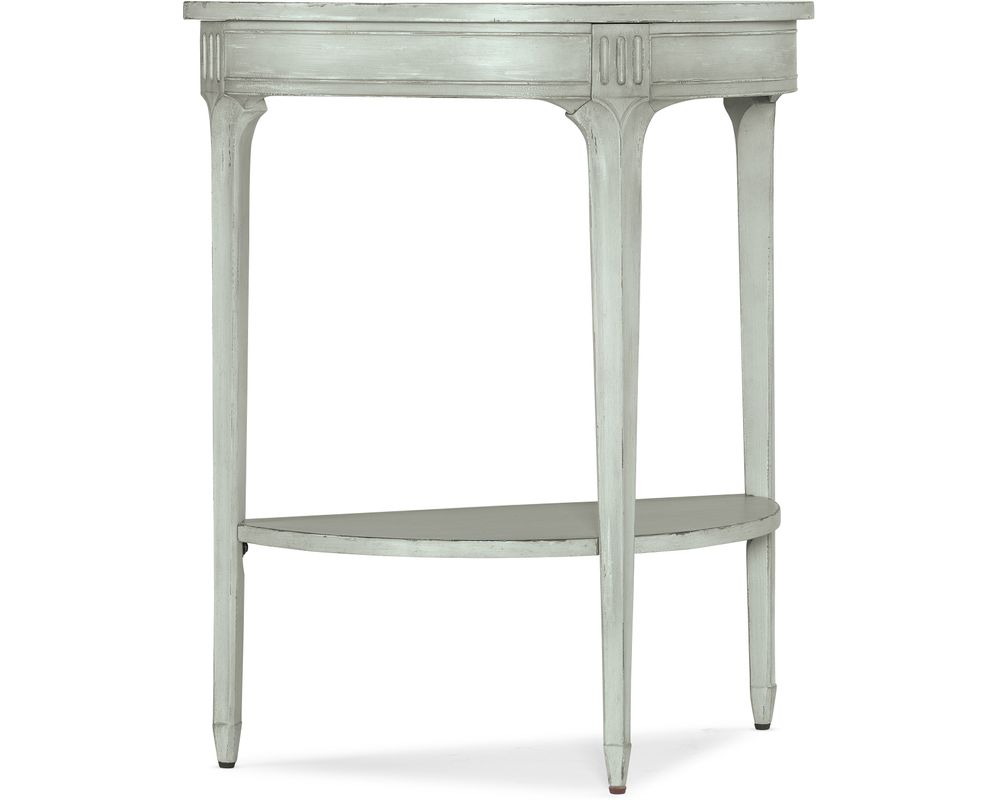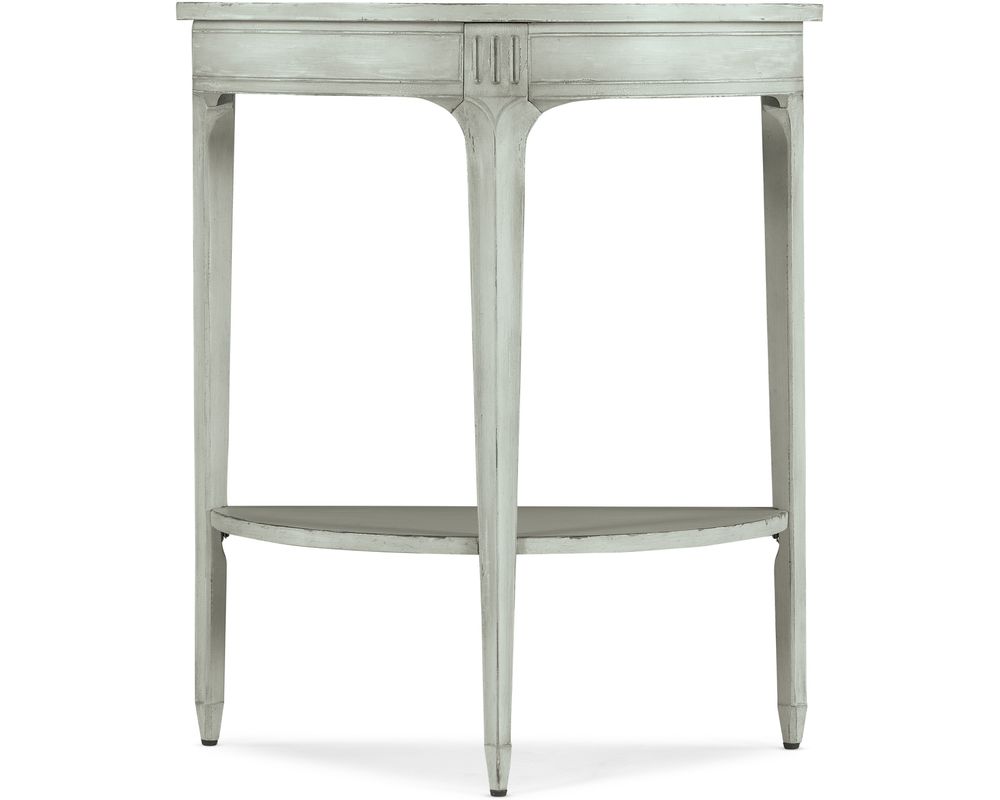 From Sofas and Sectionals.com: The Charleston Demilune Accent Table will introduce a touch of traditional elegance into your home. This stunning piece features a semi-circle demilune shape that adds a unique and sophisticated element to any room. Crafted from high-quality maple veneers, it is not only visually appealing but also durable and long-lasting.