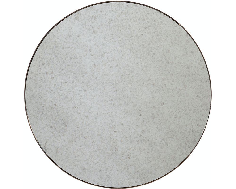 • Levelers • Removable antique aged mirrored top • Metal legs • Stretcher to floor: 9.86 • Bottom of top to floor: 24.5 • Material: Antique Mirror and Metal