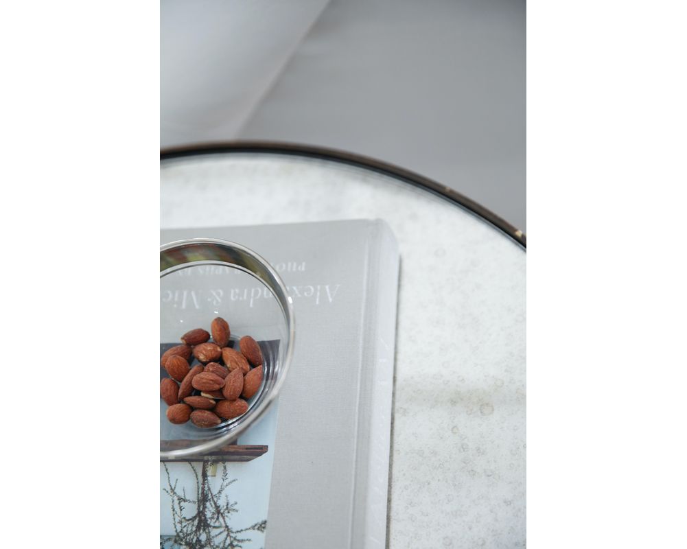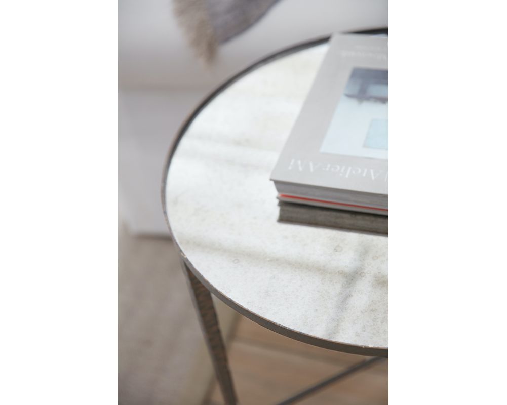 Delicately scaled and creatively designed, the Liege End Table blends both a vintage and industrial appeal with an antiqued mirror top and aged gold metal frame and stretcher. Inspired by the Belgian design aesthetic, Boheme expresses the elegance of simplicity and the essence of comfort. Lyrical and intentional, Boheme offers a subtle array of three antique gray-white finishes, speaking to Belgium's penchant for all things gray. A neutral palette of gray, blue, white and soft brown blends lyrically with an array of textures and shapes to create Boheme. The poetic beauty of each piece is unveiled in Boheme through texture, color, piece character and artistic shapes.