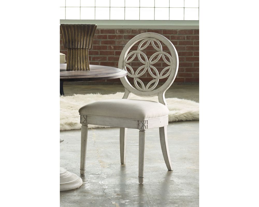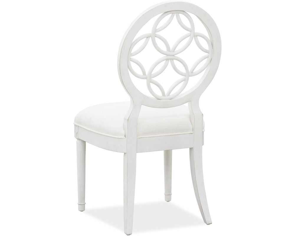 From Sofas and Sectionals.com: Introducing the Melange Brynlee Side Chair - the perfect addition to your dining room or any gathering space. This elegant chair features a unique lace-like interlocking circle fretwork back, adding a touch of delicate charm to your home decor. Not only is it visually appealing, but it also offers the utmost comfort for those long conversations and memorable moments with your loved ones.