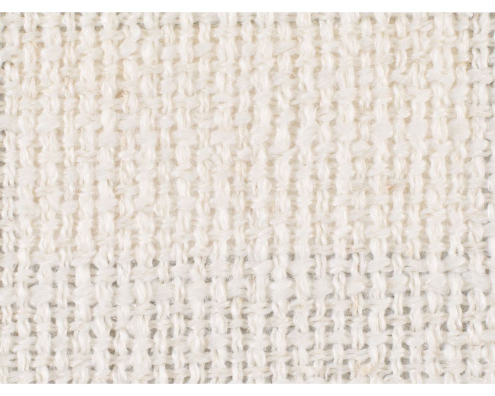The chair has a creamy white finish and is light distressing, giving it a relaxed and luxurious look. The winter white-colored Lindy Snow linen-polyester blend fabric complements the chair's design, adding a touch of sophistication to any room.