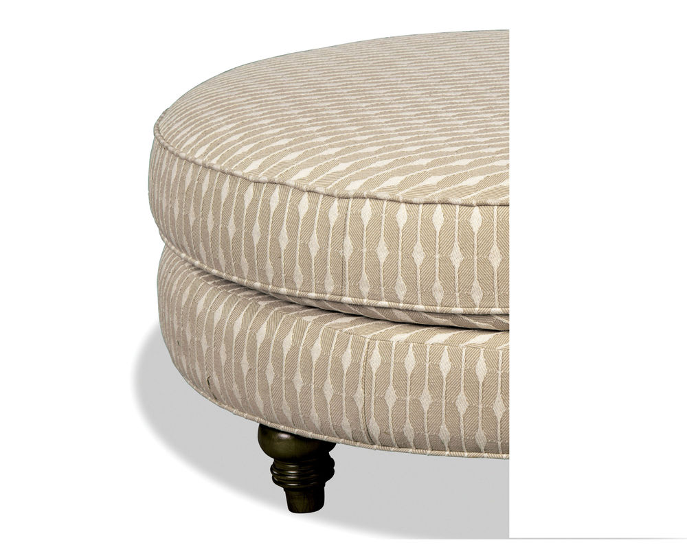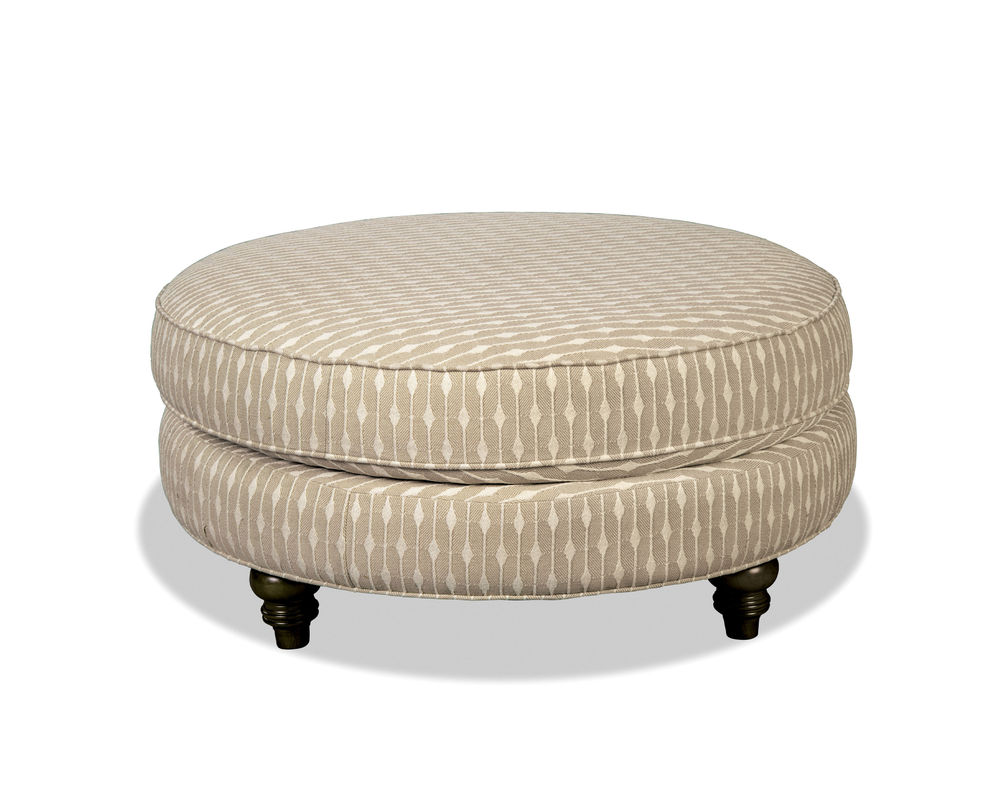 This Barbara 42" Round Ottoman (011500) is a beautiful and stylish addition to any home. Perfect for relaxing or as extra seating, this ottoman is both comfortable and chic. The ottoman is crafted with your choice of over 100 performance fabrics, giving you the opportunity to customize your piece to your own personal style. The ottoman is set atop gracefully turned legs for a delicate touch, and the round design makes it a great centerpiece for any room. With its comfortable cushioning, this ottoman is sure to become one of your favorite pieces in no time.