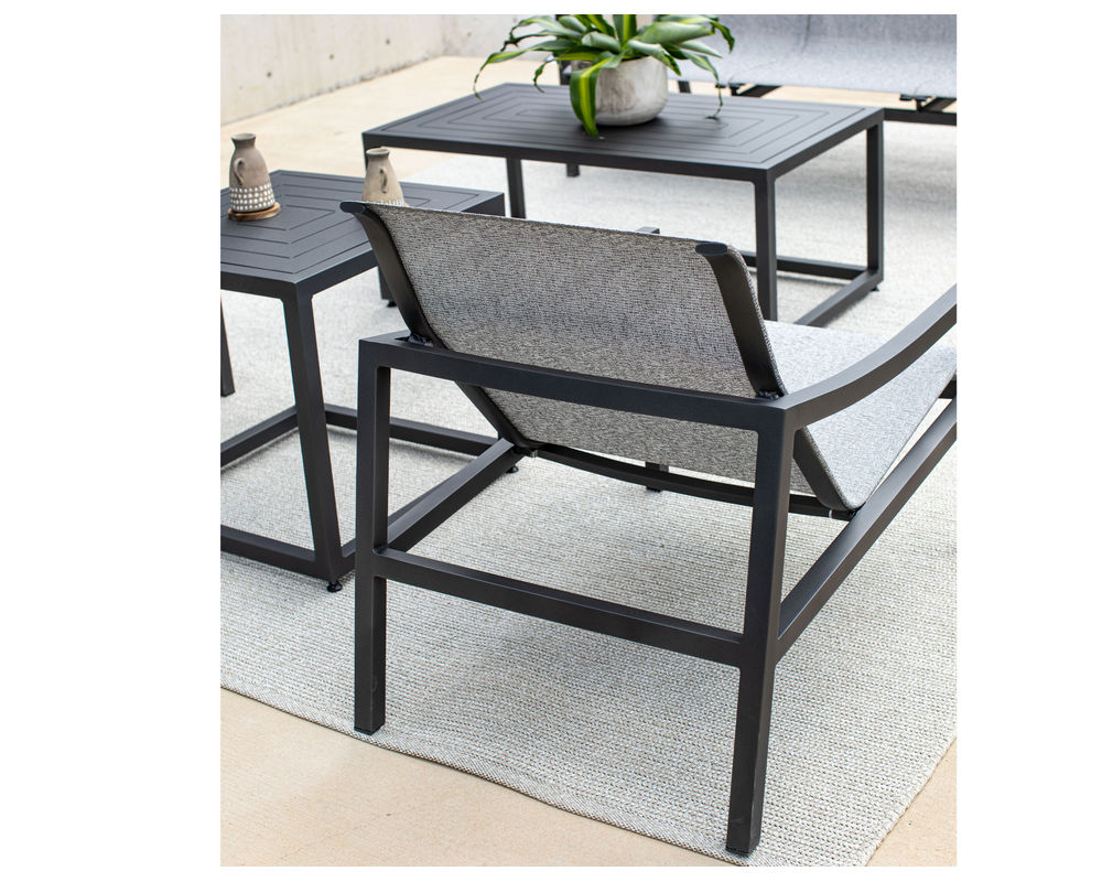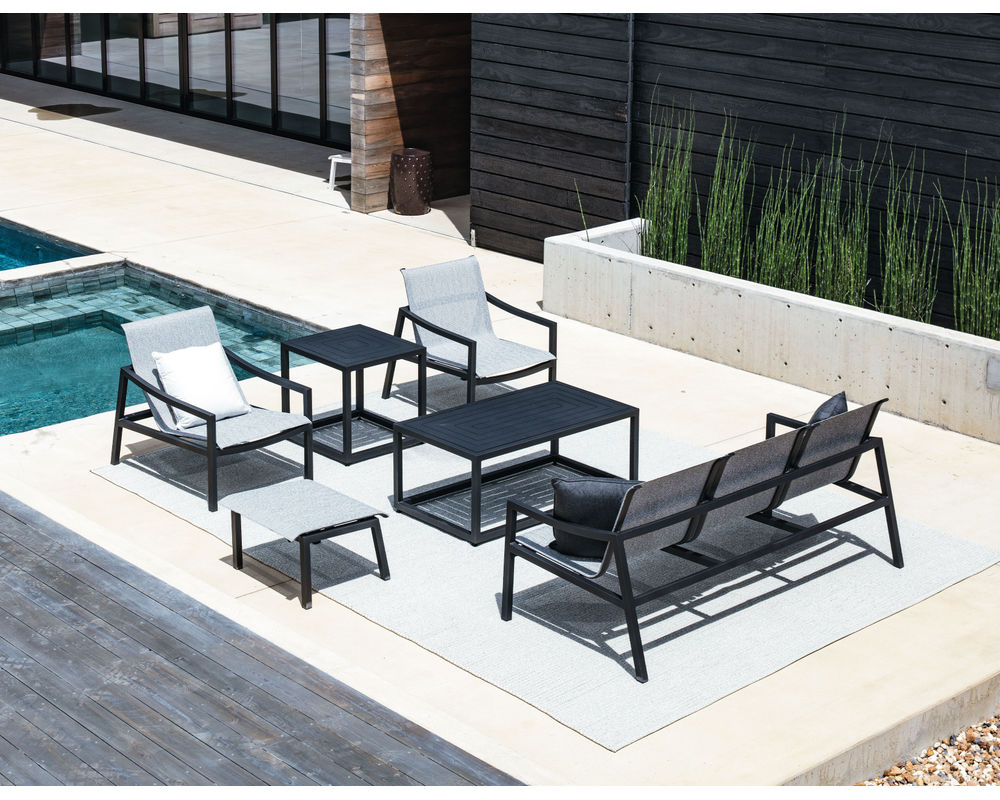 Poolside Minimalist Cushion-less comfort that is chic and perfect for anyone who favors a minimalist approach to outdoor living. With a unique design, the Escape seating collection will provide years of comfort and beauty to any outdoor room. Escape sling fabrics are 100% Vinyl-Coated Polyester for Heavy Duty wearability. Escape Sling is part of the Custom Casual Collection from Lane Venture