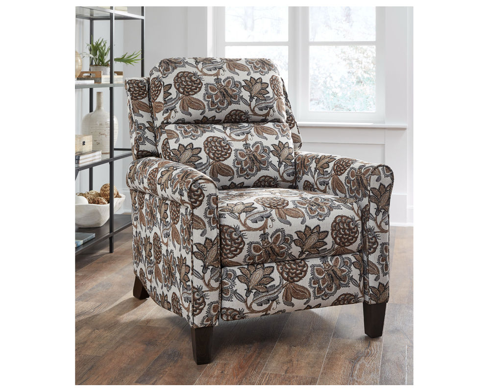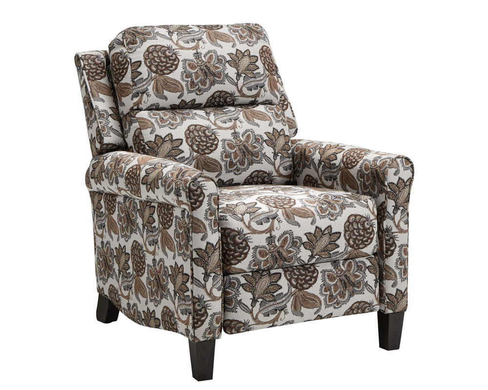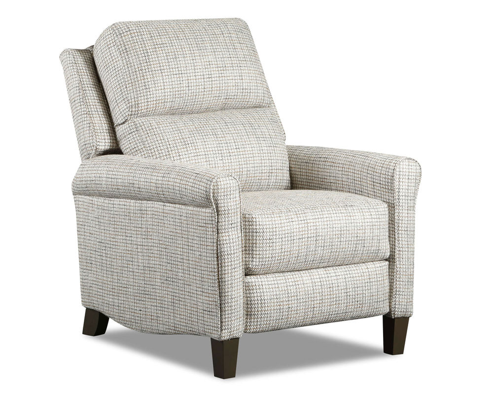 A time-honored classic recliner, the Dapper is part of the Rock in Style collection introduced by Southern Motion. That means not only is it artfully aesthetically composed but it is built around an innovative new mechanism that allows it to ROCK! An unexpected bonus feature is that it not only allows you to rock in a sitting position but even when fully reclined. Energex premium polyfoam is used in the seat cushion and provides a wonderfully soft initial sit as well as proper support for hours of blissful use. Just a soft nudge on the upholstered doll head arm trimmed with a round welt will get you going. Other upholstery treatments include a boxed seat cushion and an exquisite layered wing back treatment with barrel shaping.