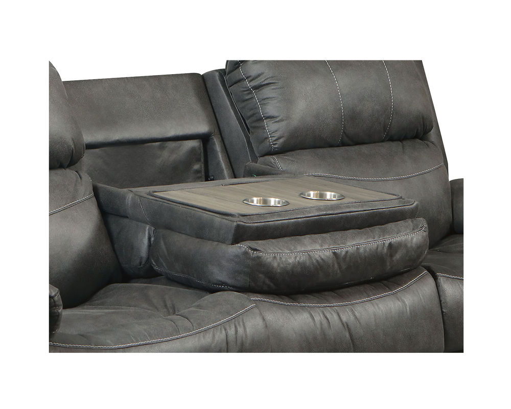 The Power Play Reclining Sofa is the perfect blend of style, comfort, and functionality. With its huge and sumptuous arm pads, undulating bustle back, and pad-over-chaise seating, you can lounge in supreme comfort. The hidden surprise of this sofa is the drop-down table, finished in gorgeous gray woodgrain and stainless steel dual cupholders - perfect for keeping snacks and drinks close by. And you can tailor this piece to your exact taste with its hundreds of fabric and leather options. For a sofa that looks great and offers plenty of comfort and convenience, the Power Play Reclining Sofa is the perfect choice.