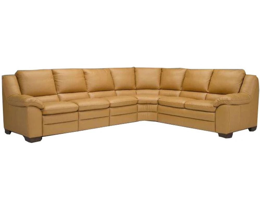 Classic by design, the Prudenza A450 "100% Top Grain Leather" Power Reclining Sectional is an ultra-large sectional that offers more than enough room for you and the family to get comfortable and cozy for a night in. The Prudenza A450 Reclining Sectional is upholstered over every inch with 100 percent top-grain leather. This leather is soft and supple; it is the most luxurious variety of leather on the market and is designed to only get better with age. There are two seats on one side of the corner cushion of the reclining sectional and three seats on the other to offer ample room for cozying up—the sectional reclines easily to allow you to get comfortable in any position you'd like. Saddle arms are found on either end, each overstuffed and plush to give you the perfect resting place.