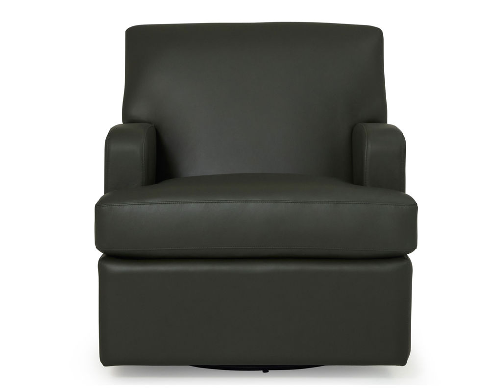 We purchased these chairs in vegan leather and really like them. The swivel is smooth and they are very comfortable. Nice and wide for men too.
