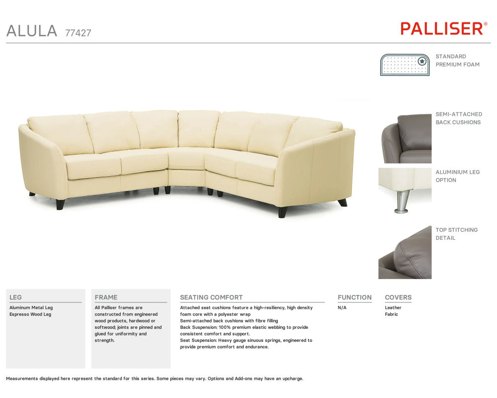Beautiful well made sectional . We previously had a Palliser brand and know how well they are constructed , seats & cushions that don’t sag. Shipping was smooth ( even during pandemic) & we are very pleased .