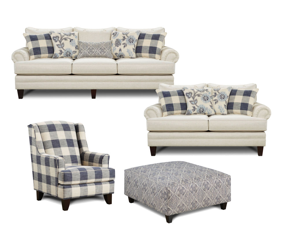 Catalina 96" Linen 4 Piece Living Room (Includes sofa, 2 chairs and cocktail ottoman)