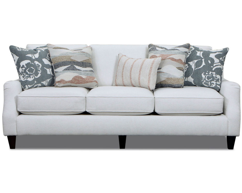 The Missionary Salt Sofa features English pleated arms, box border seat and back cushions and transitional design Missionary Salt is a mordern design in a global pattern of covers. It comes with 2 pairs of contrasting pillows and a elongated kidney pillow. The Missionary Salt Sofa is part of our Luxe Living Collection which features fully framed and upholstered outside arms and outside backs, a 1.8 density foam core seat cushion wrapped with HR high resiliency cool gel top and bottom with plush dacron fiber. Luxe Living also features 11 inch thick seat cushions that are zippered, loose and reversible. All back cushions are also loose, zippered and reversible filled with bagged and channeled fiber for softness and comfort. We also complete thorough testing of the seat cores to ensure comfort, consistency and durability.