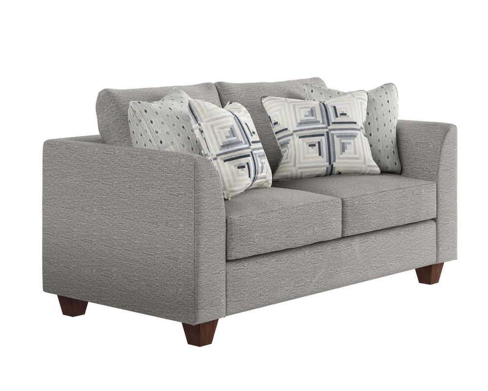 The Palm Beach Iron Sofa comes with 2 pair of contrasting pillows and an additional contrasting kidney pillow. The box border seat cushions and welted inside back cushions are all loose and reversible allowing you to rotate them to prolong the life of the cores as well as the life of the fabric. Palm Beach Iron features a shelf arm that is flared in the front and dark coffee tapered wood legs.