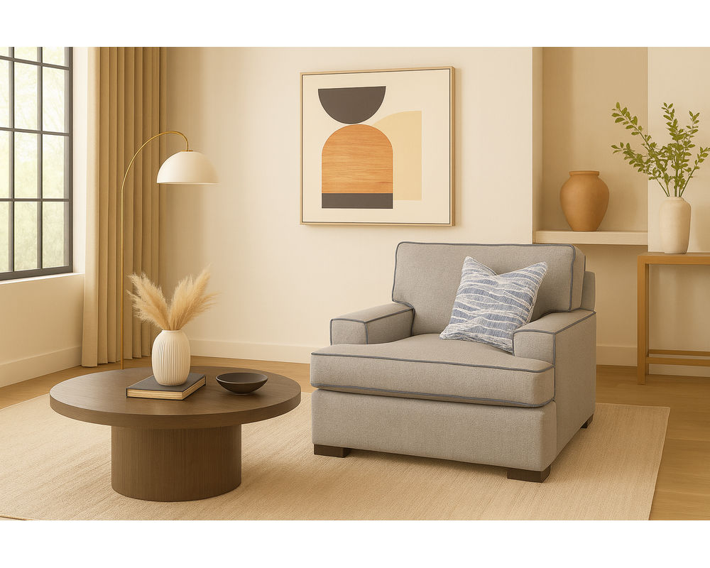 The Bridgetown Chair and a Half offers the perfect blend of spacious comfort and modern design. With wide track arms, block legs, and plush synthetic blend cushions that replicate the loft and feel of natural down, it’s the ideal seat for lounging in style. Finished with a coordinating blendown pillow, this oversized chair brings both coziness and sophistication to any living space.