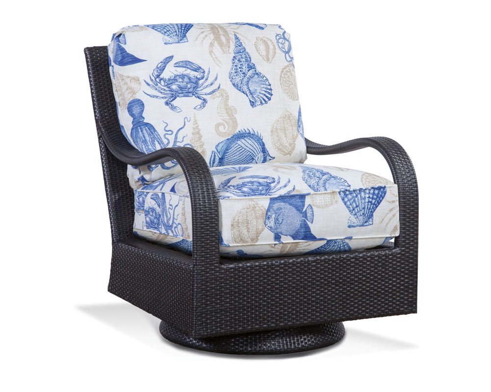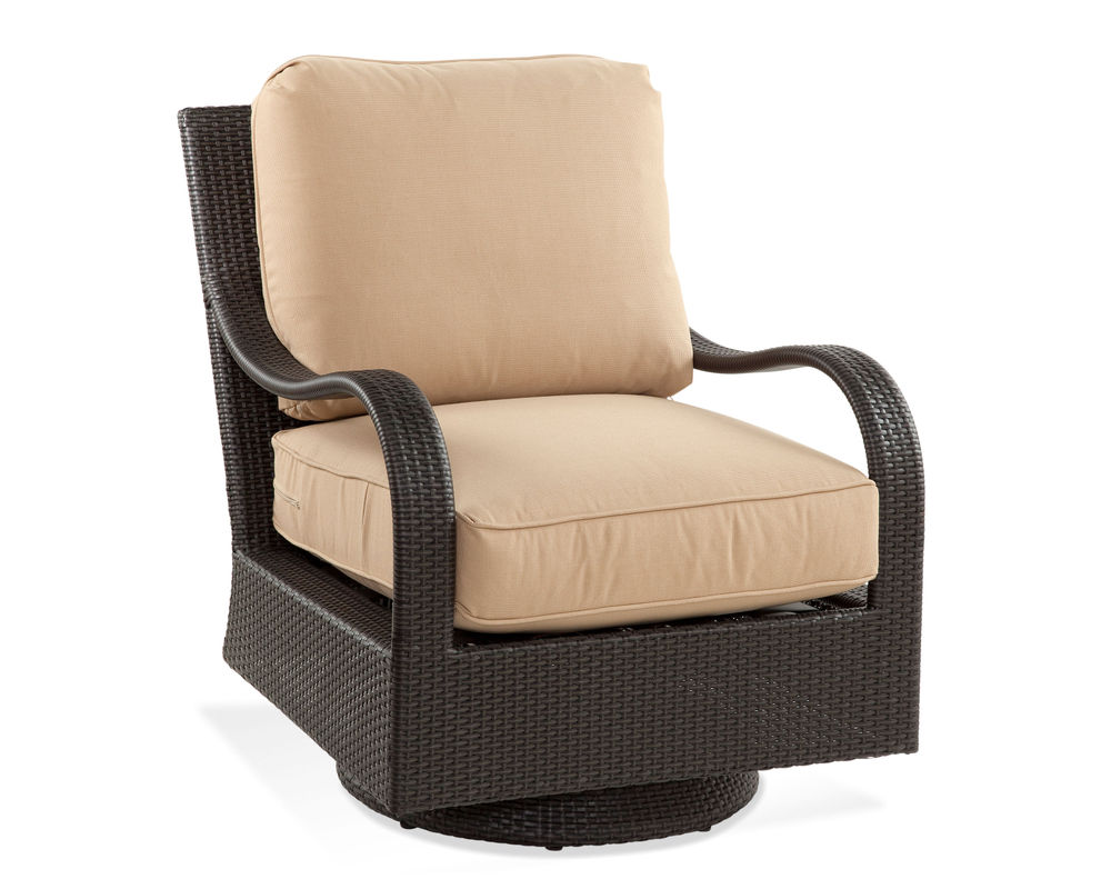 • Handmade artisan quality • HDPE Synthetic wicker weave resists outdoor elements • Frames are PE Aluminum, best for outdoor use • Weather and UV resistant powder coated paint on frames • Loose, zippered weather resistant Alfresco seat cushions • Fabric, outdoor weather resistant like Sunbrella • Removable webbing seat deck supports cushions
