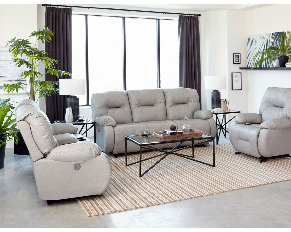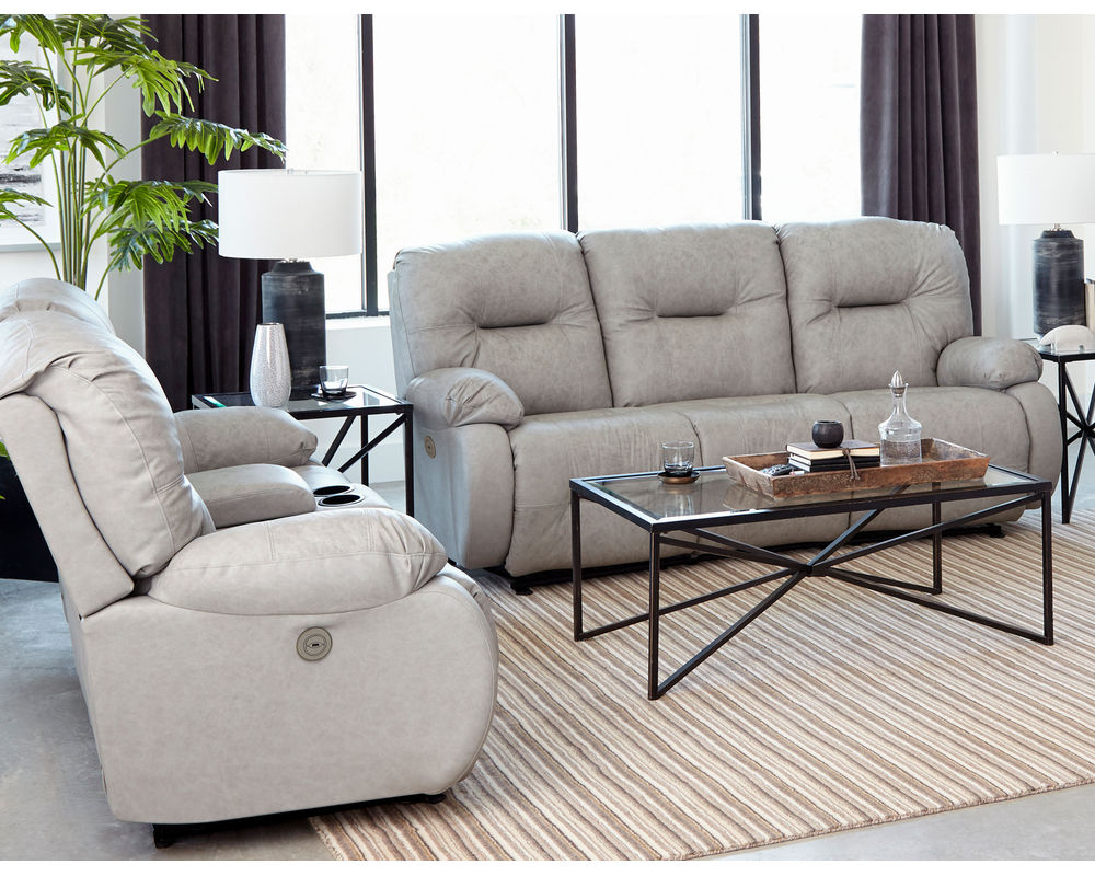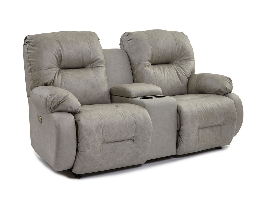 The Brinley L700 Reclining Console Loveseat is an ideal addition to any home. This loveseat offers incredible comfort and convenience with its wide range of features. Choose from hundreds of fabric and leather options to create the perfect look for your space. The extra stuffed pillow arms and backs are filled with premium cushioning fibers for superior comfort, while the Performa-Weave® technology cushioned chaise lounges provide long-lasting durability. Enjoy the convenience of the easy-recline handle instead of the power button or opt for the Power Tilt Headrest option for added comfort and support when reading or watching television. This option also includes a USB charging port on both sides of the sofa or loveseat. Whether you're looking for a comfortable place to relax or a stylish addition to your living room, the Brinley L700 Reclining Console Loveseat is the perfect choice.