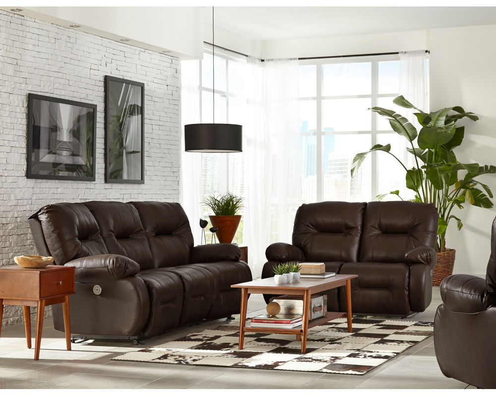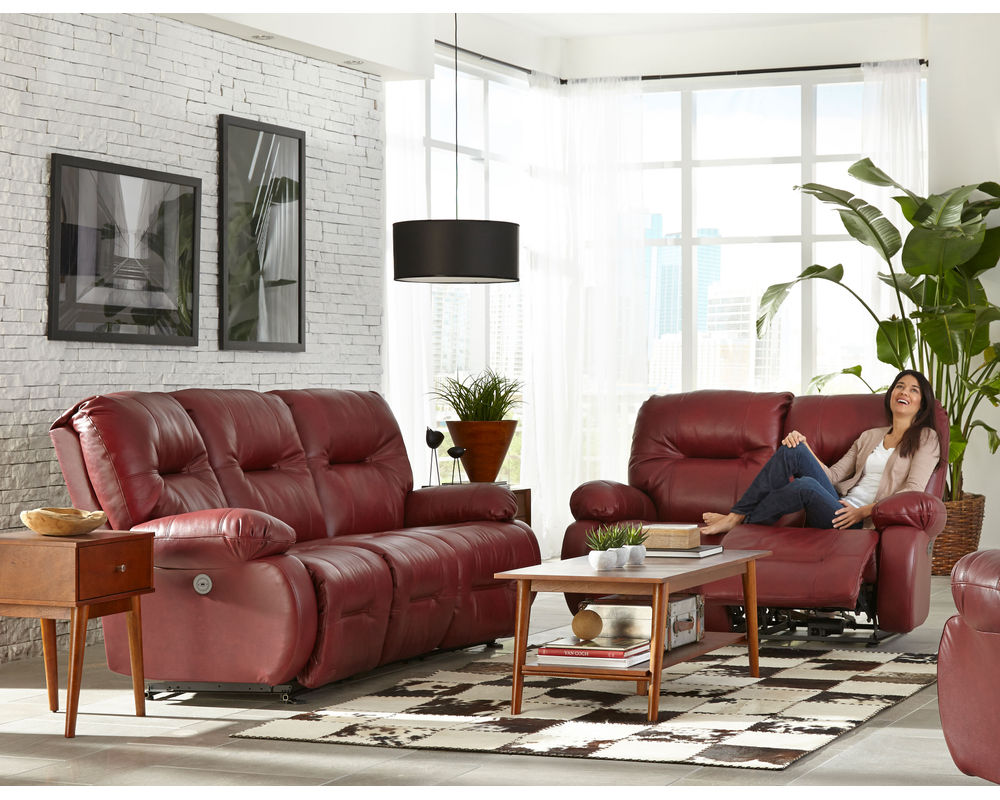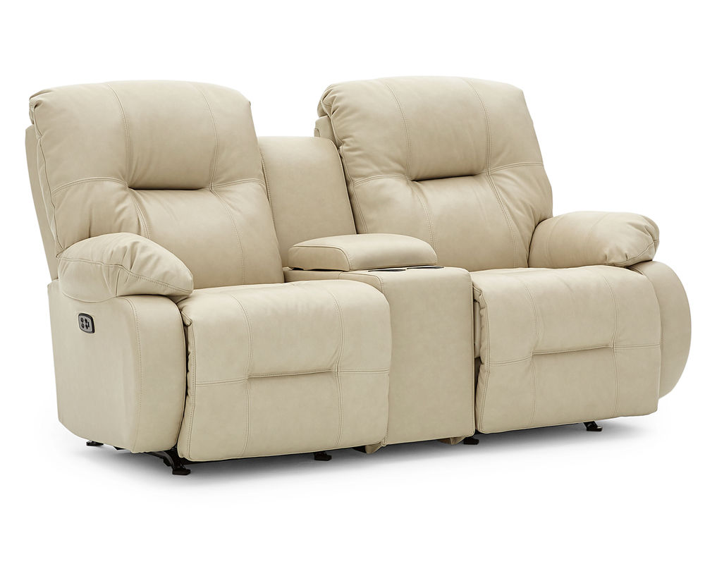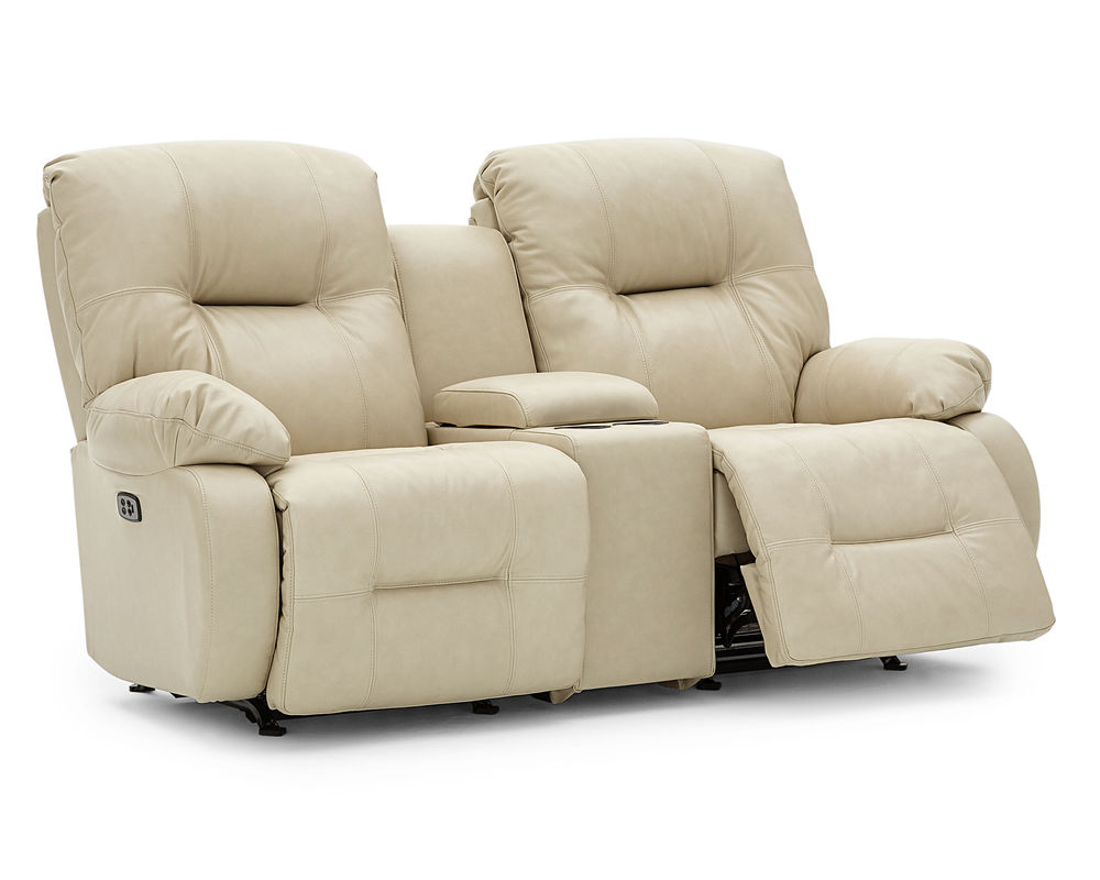 The Brinley L700 Reclining Console Loveseat is an ideal addition to any home. This loveseat offers incredible comfort and convenience with its wide range of features. Choose from hundreds of fabric and leather options to create the perfect look for your space. The extra stuffed pillow arms and backs are filled with premium cushioning fibers for superior comfort, while the Performa-Weave® technology cushioned chaise lounges provide long-lasting durability. Enjoy the convenience of the easy-recline handle instead of the power button or opt for the Power Tilt Headrest option for added comfort and support when reading or watching television. This option also includes a USB charging port on both sides of the sofa or loveseat. Whether you're looking for a comfortable place to relax or a stylish addition to your living room, the Brinley L700 Reclining Console Loveseat is the perfect choice.