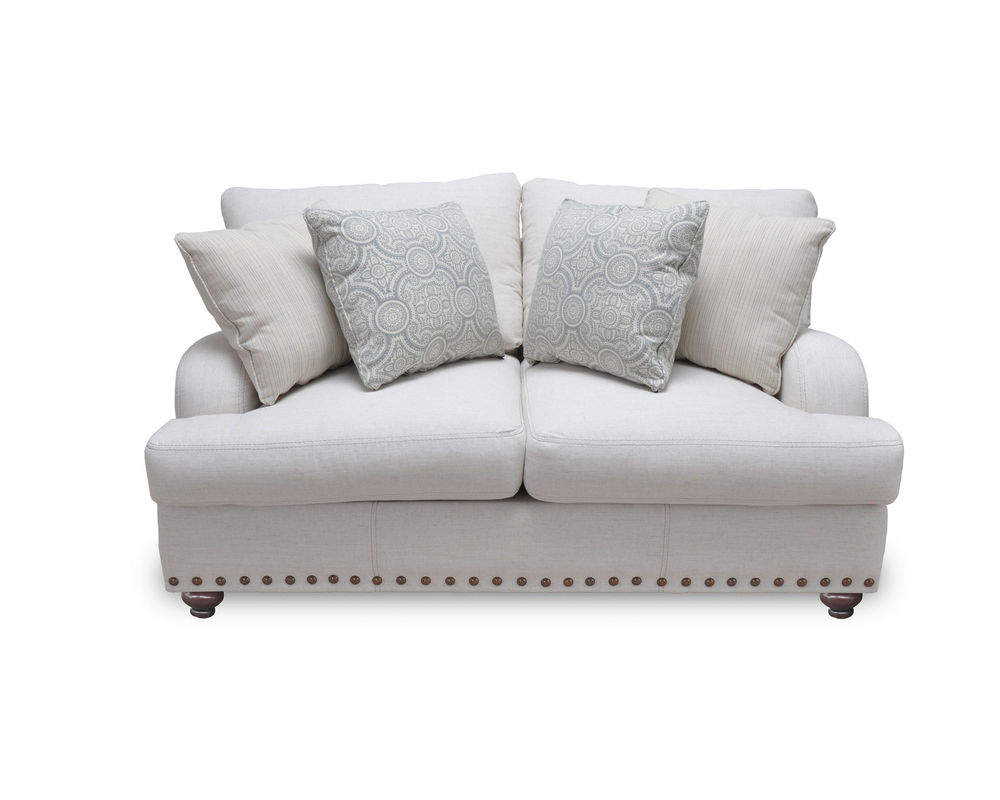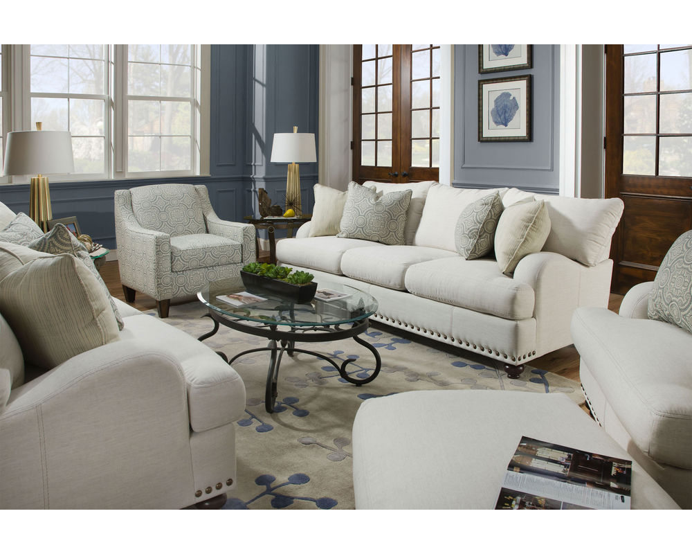 All your favorite traditional design elements await you in the Brinton 93" Sofa by Franklin. The Brinton 93" Sofa by Franklin is a conventional sofa with a beautiful, familiar silhouette and plenty of comfortable seating. This sofa offers a three-over-three seating arrangement that will ensure plenty of room for up to three people to fit. These cushions feature three unattached back cushions, making it easier for you to organize and place them the way you want to while also allowing you to clean them easily when the time comes. These cushions are all full of soft and comfortable materials that will support you and keep you relaxed for as long as you sit on the sofa. Along the base of the Brinton 93" Sofa by Franklin, there is nailhead trim that gives it an additional classical accent.