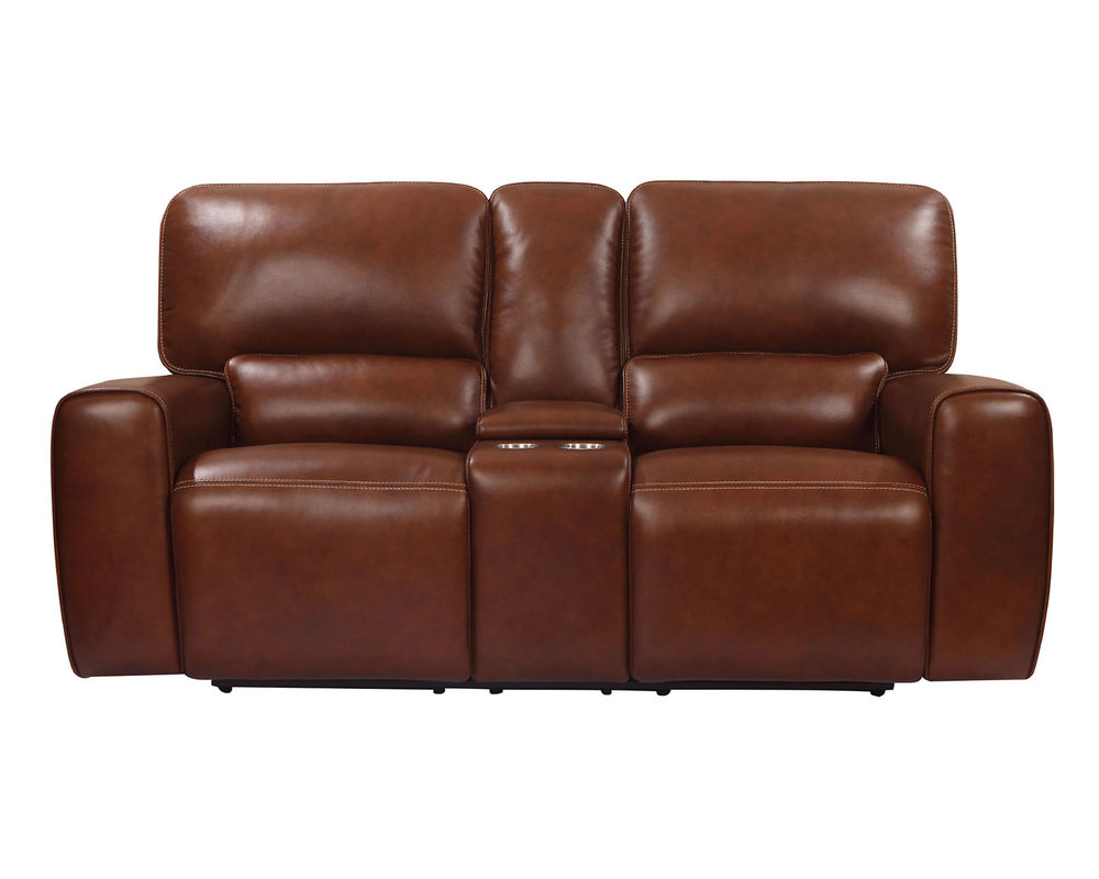 Lay into comfort with this power reclining sofa. It offers a stylish design with its leather upholstery and rich brown complexion while also featuring power headrests and lay-flat reclining mechanisms. It also provides oversized headrests and ultra plush armrests for even more comfort. Plus, don't forget the USB port in the side for all your electronic needs!