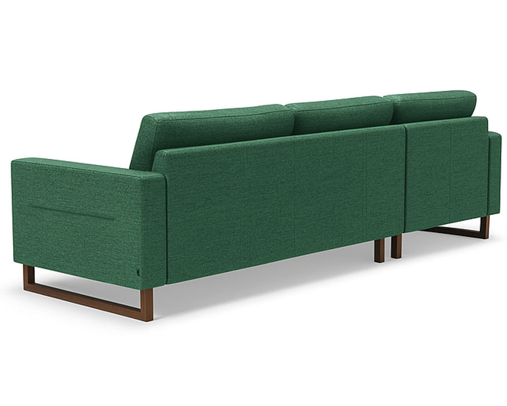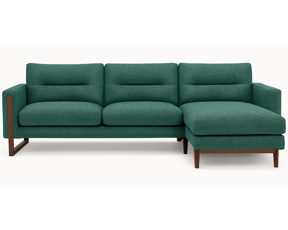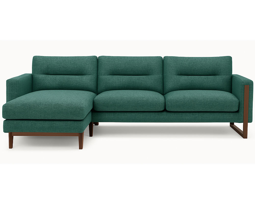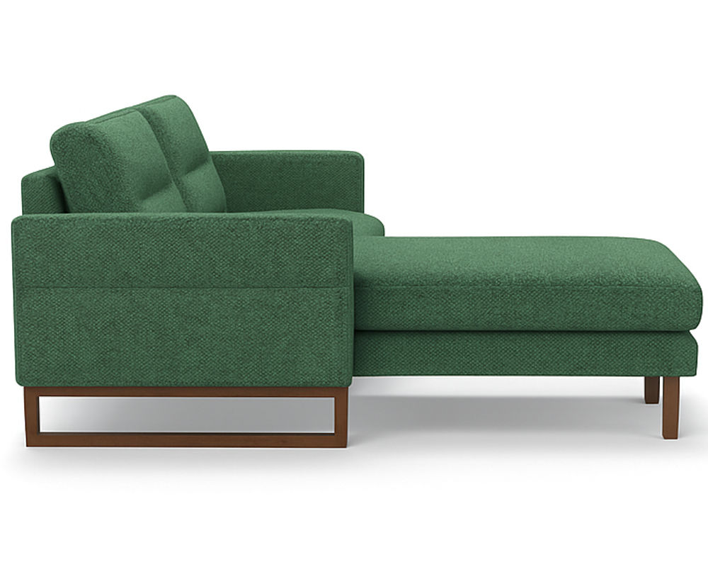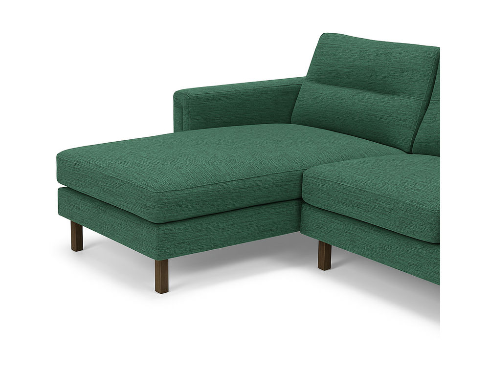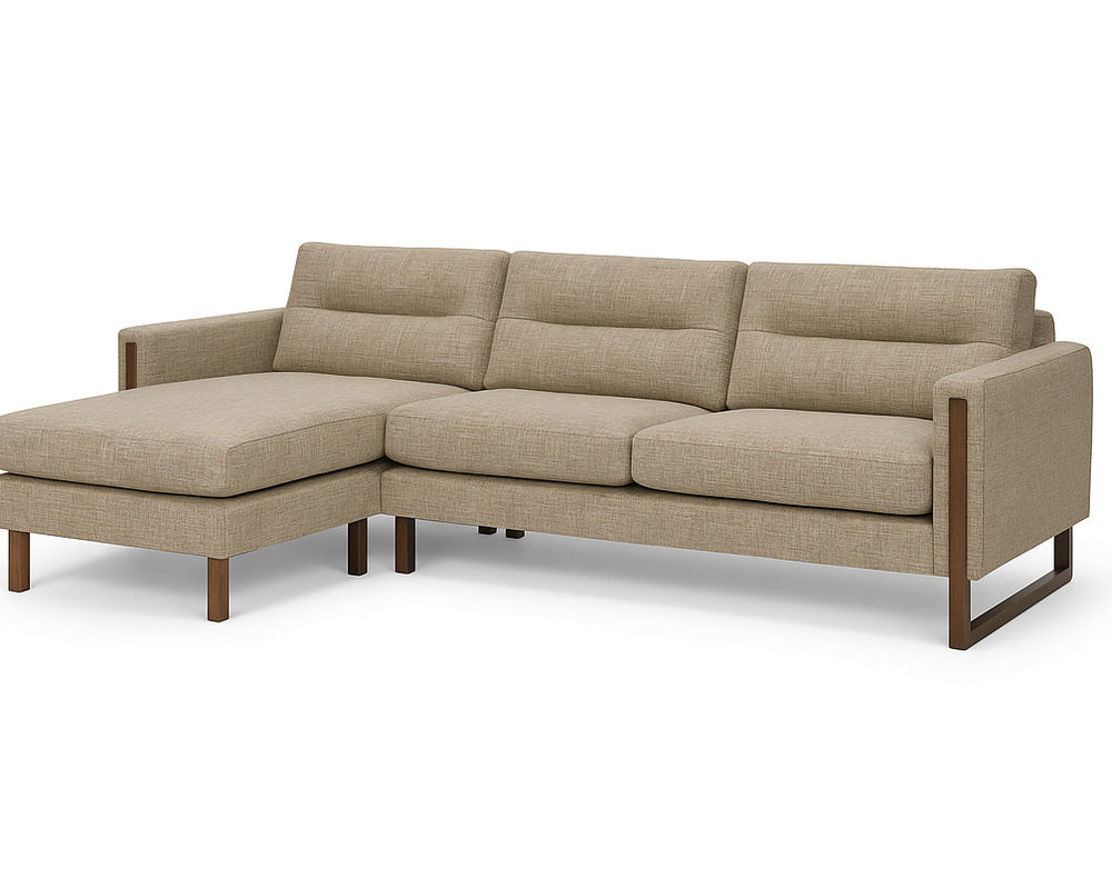 The Brookes Two-Piece Chaise Sectional captures the essence of modern refinement with its clean lines, architectural frame, and exquisite material choices. Designed for both statement and comfort, Brookes showcases a sleek track arm complemented by a distinctive sleigh leg that extends upward into the arm panel — a seamless detail that underscores its tailored sophistication.