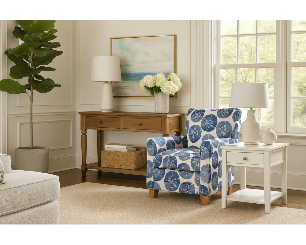 The Buckley Accent Chair combines timeless elegance with modern versatility. Its flared arms, tight back, and exposed wood legs create a tailored silhouette that fits seamlessly into any décor. Designed for comfort and durability, the reversible seat cushion ensures long-lasting style and support.