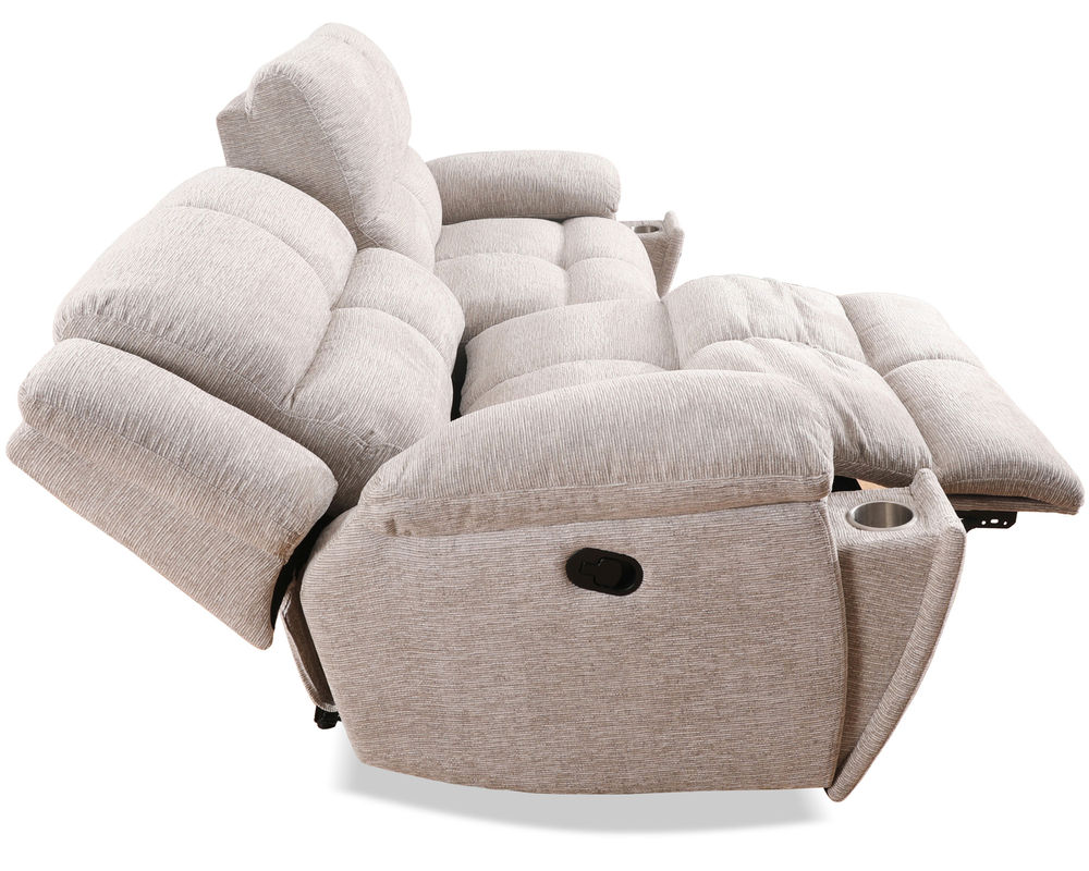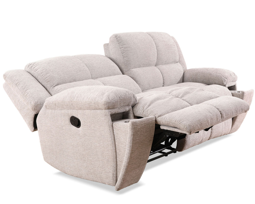 But it's not just about looks with the Buster Dual Reclining Sofa. This sofa is designed with your relaxation needs in mind. Each arm features built-in cup holders, so you can keep your favorite beverage close at hand while you kick back and relax. The cup holders are cleverly hidden away when not in use, maintaining the sleek and stylish appearance of the sofa.