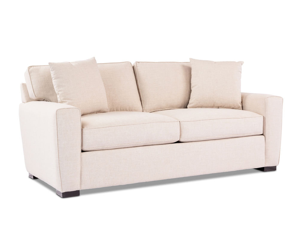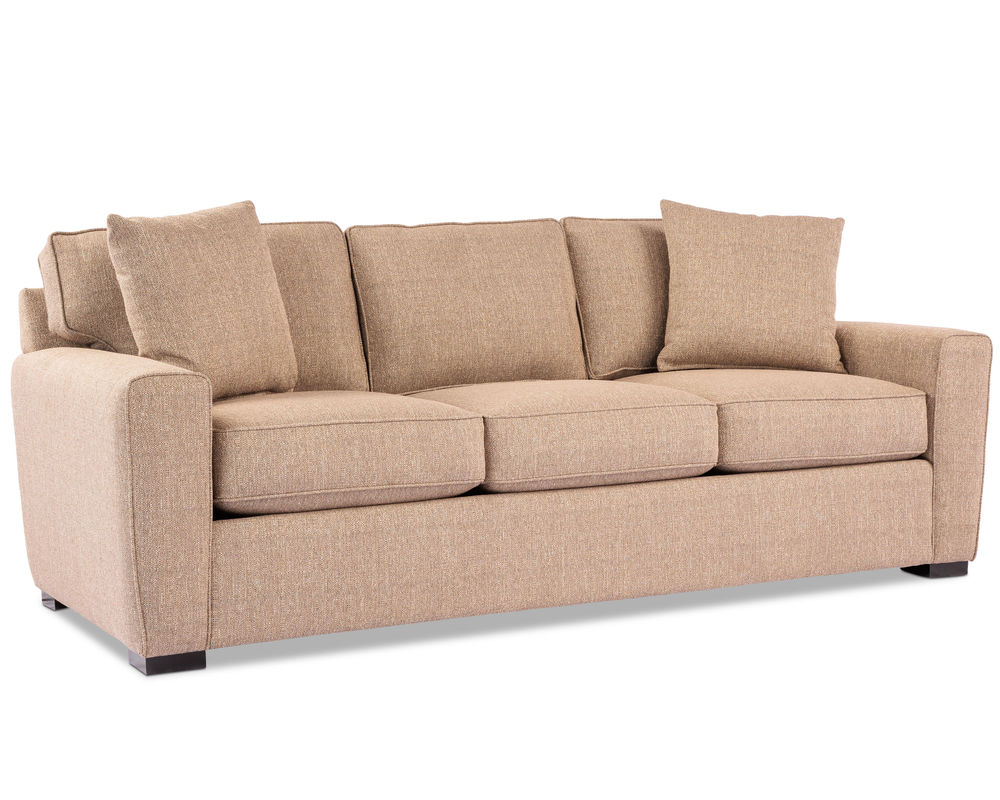Introducing the Calli Sofa, a comfortable and stylish piece perfect for any home. Its extra-wide track arms provide a modern look, while its solid wood feet add a touch of sophistication. With its reversible cushions, you won't have to worry about fabric wear – simply flip them over when you're ready for a change. The Calli Sofa also includes two 21" toss pillows, adding an extra layer of comfort and style. Whether you want to upgrade your living room or add a touch of elegance, the Calli Sofa is the perfect choice.