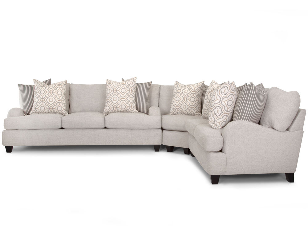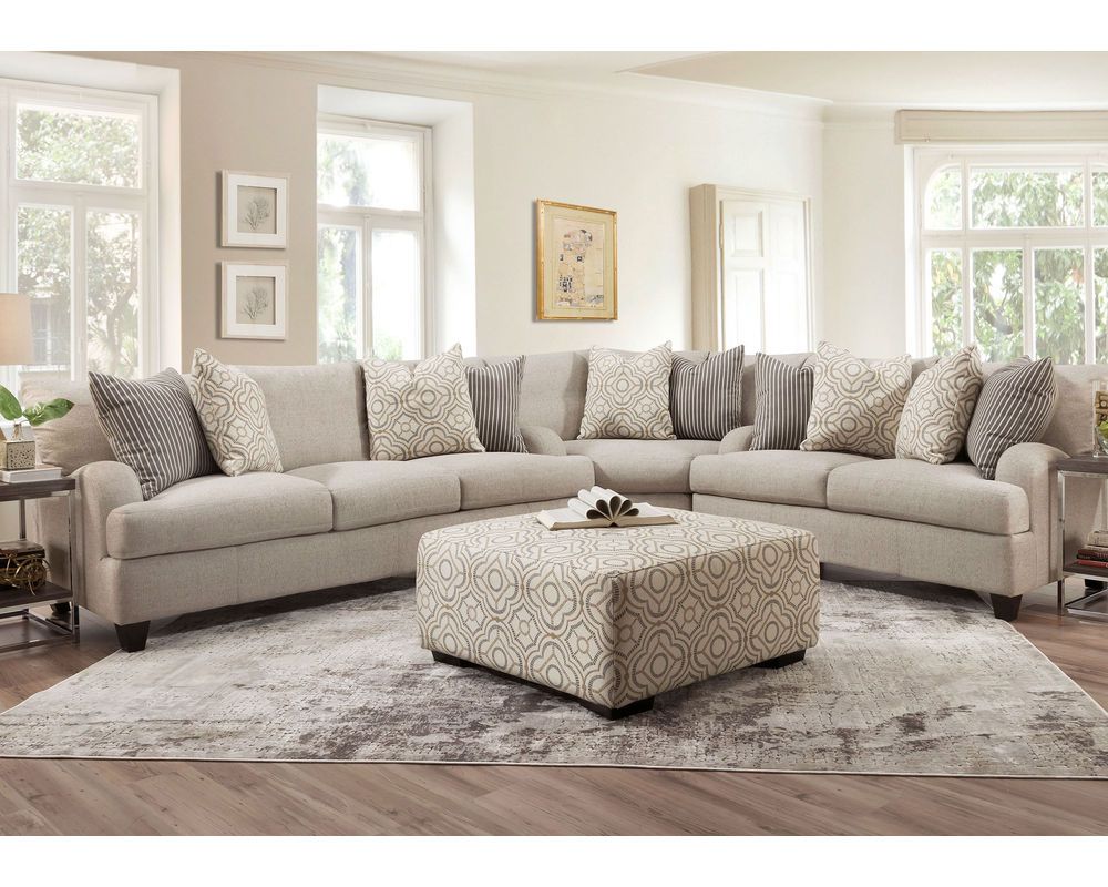 The Cambria 992 Sectional is the perfect addition to any living space. Upholstered in a durable 100% polyester fabric, this sectional offers a high-end look that is designed to withstand day-to-day use. The sectional comes with two decorative pillows, one with a striped pattern and the other with a stylish concentric pattern, adding a touch of elegance to the overall design.