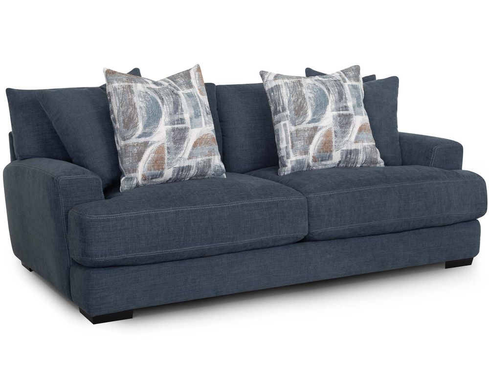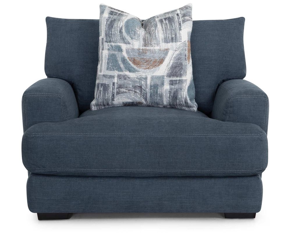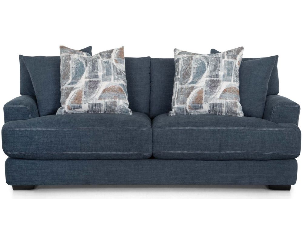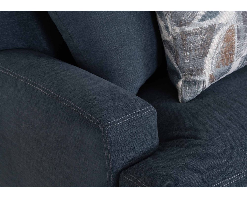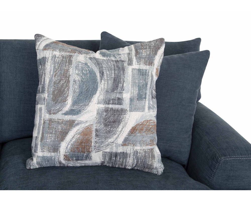 Introducing the Camden 809 Sofa - the perfect addition to elevate your living space. This stunning collection includes a sofa, loveseat, chair-and-a-half, and matching ottoman, all upholstered in a durable blue-gray, denim-like fabric. The coordinating throw pillows add a touch of sophistication to the set's overall look.
