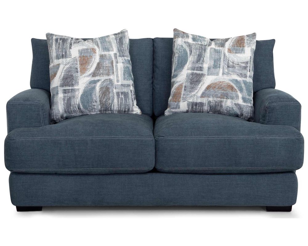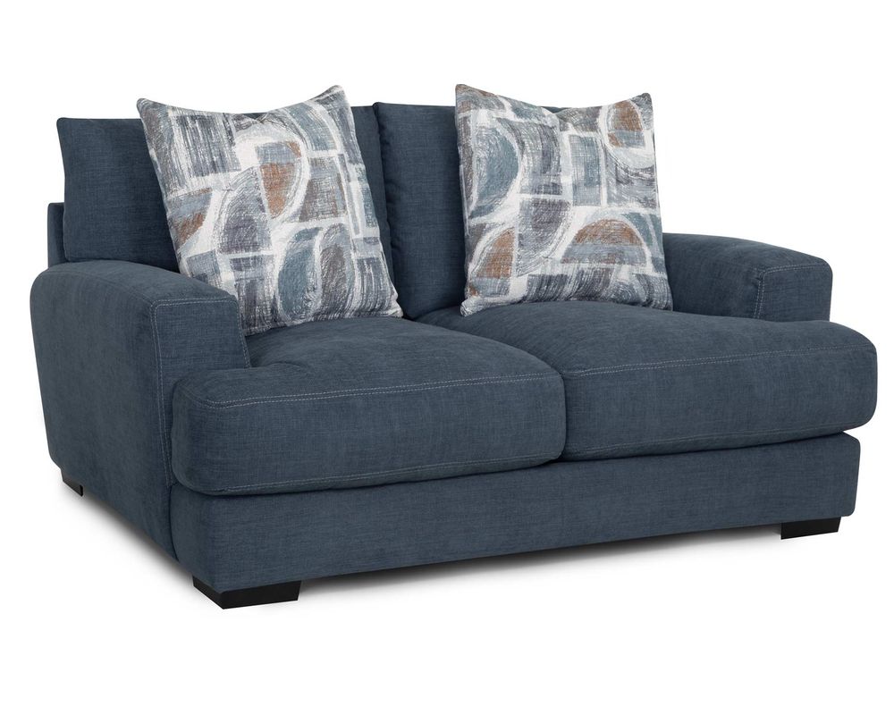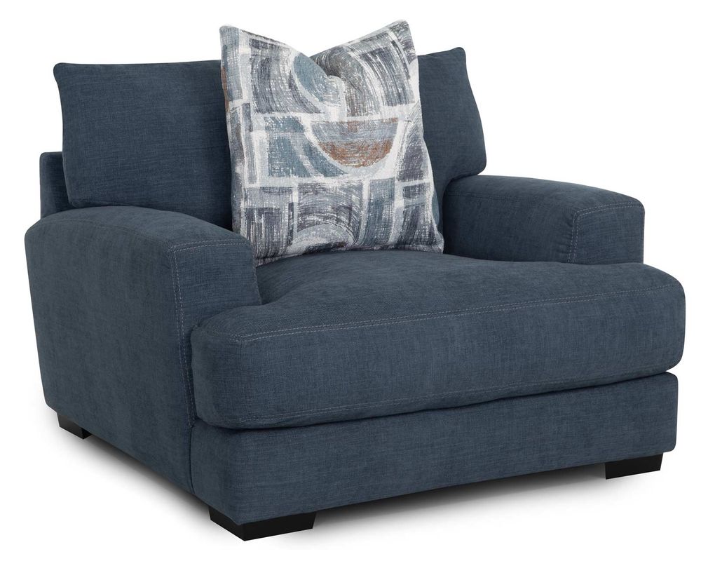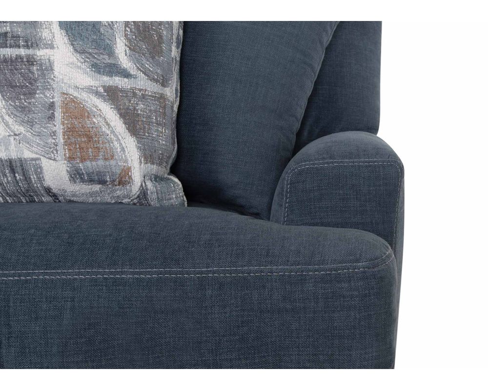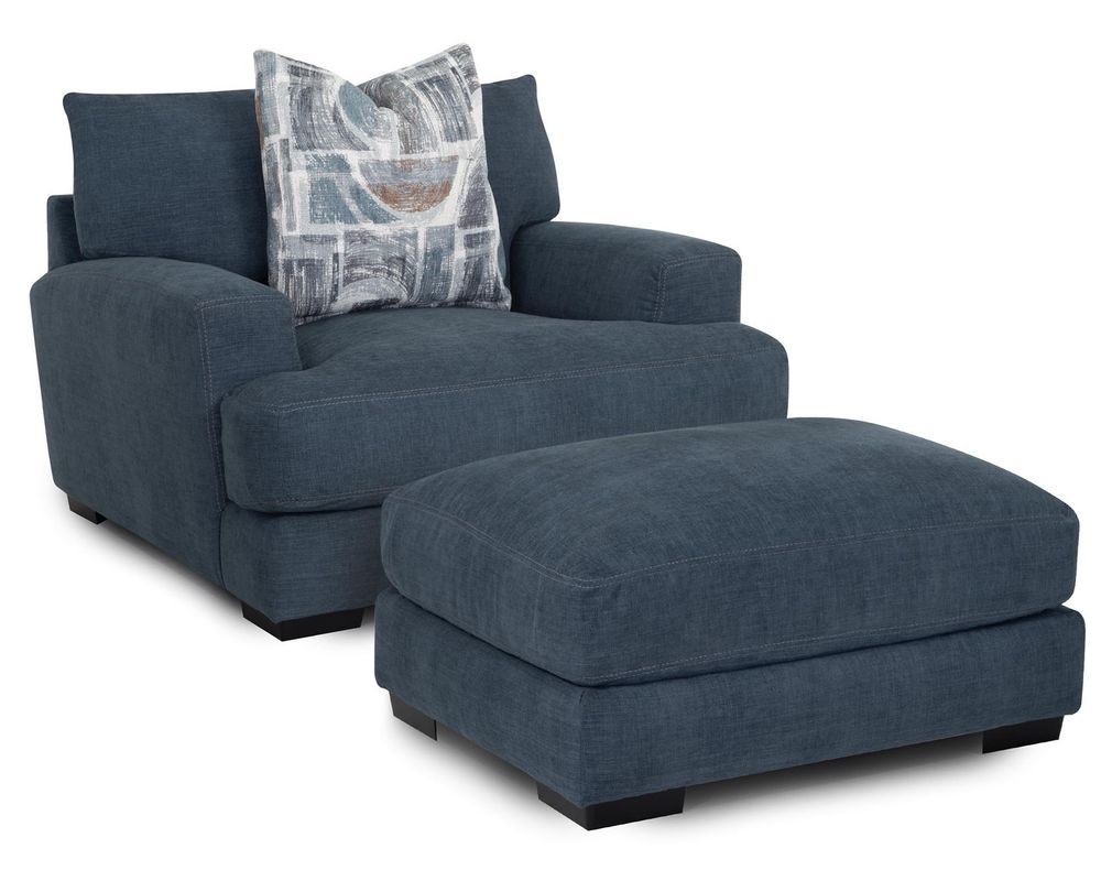 Introducing the Camden 809 Sofa - the perfect addition to elevate your living space. This stunning collection includes a sofa, loveseat, chair-and-a-half, and matching ottoman, all upholstered in a durable blue-gray, denim-like fabric. The coordinating throw pillows add a touch of sophistication to the set's overall look.