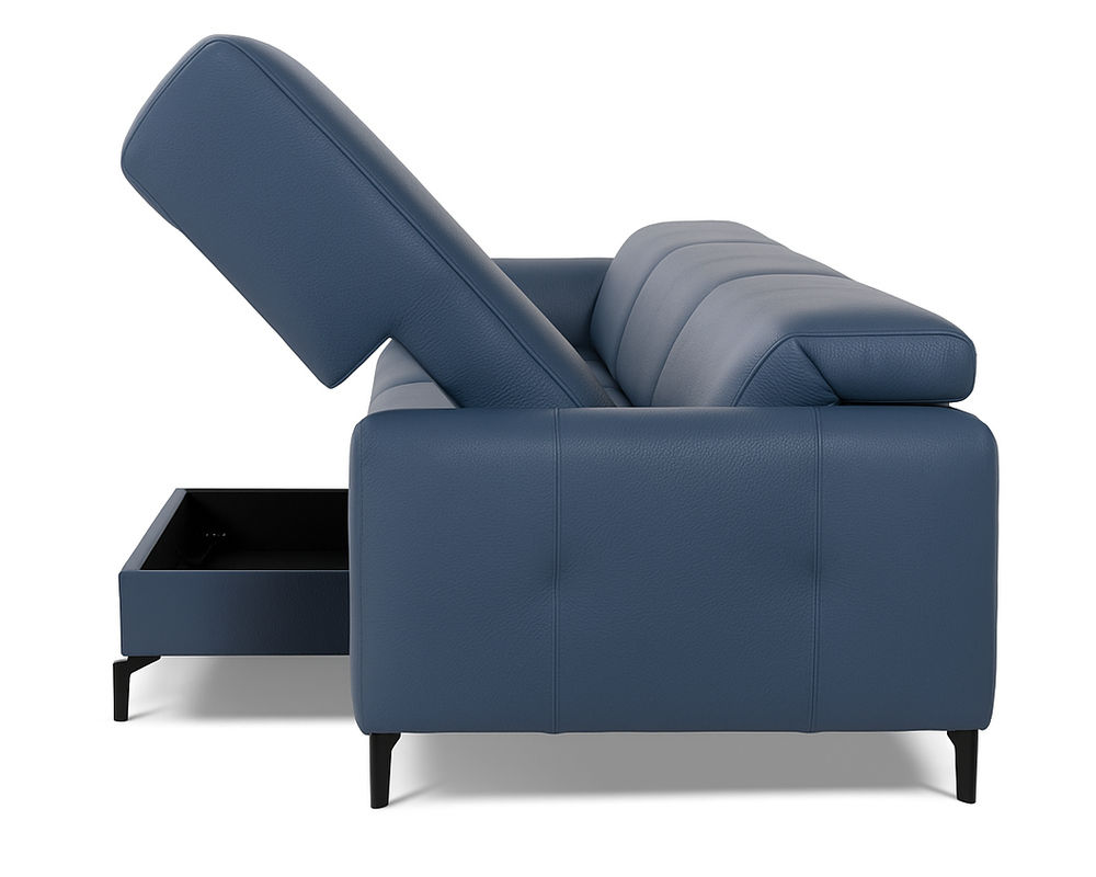The Capri Two-Piece Chaise Sectional blends refined Italian design with everyday functionality and luxurious comfort. Its smooth, sculpted silhouette and generous proportions create an inviting centerpiece for any contemporary space. Thoughtfully engineered manually adjustable headrests provide personalized support, allowing you to easily shift from upright conversation to full relaxation with a simple touch — seamlessly merging comfort and sophistication.