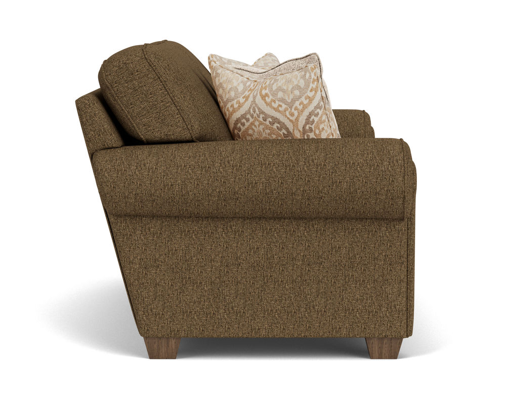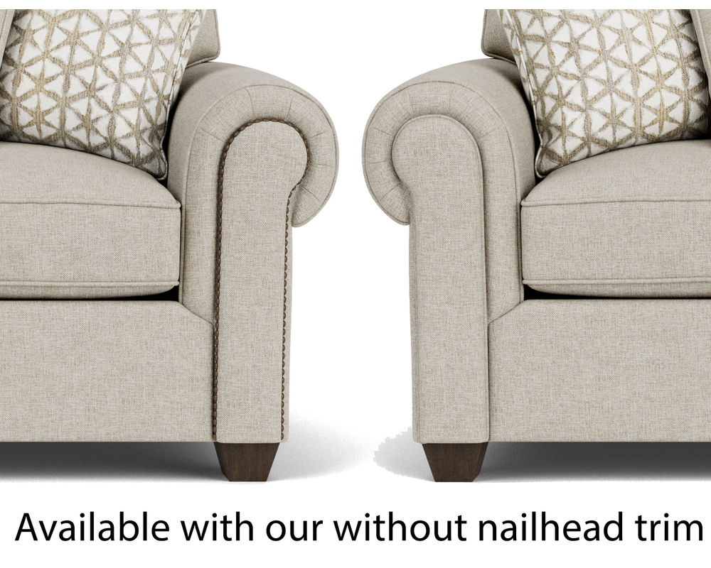 The Flexsteel Carson 7937 Loveseat is the perfect accent for any room with its dramatic characteristics and bold frame. Its unique wrap-around padded armrests add comfort and style to your seating area. The optional nailhead trim tightly spaced lines the exposed arm fronts for an eye-catching detail. The overstuffed seat and back cushions make it the perfect spot to relax and unwind after a long day. With its unique style and comfortable design, the Flexsteel Carson 7937 Loveseat is sure to be the perfect addition to any home.
