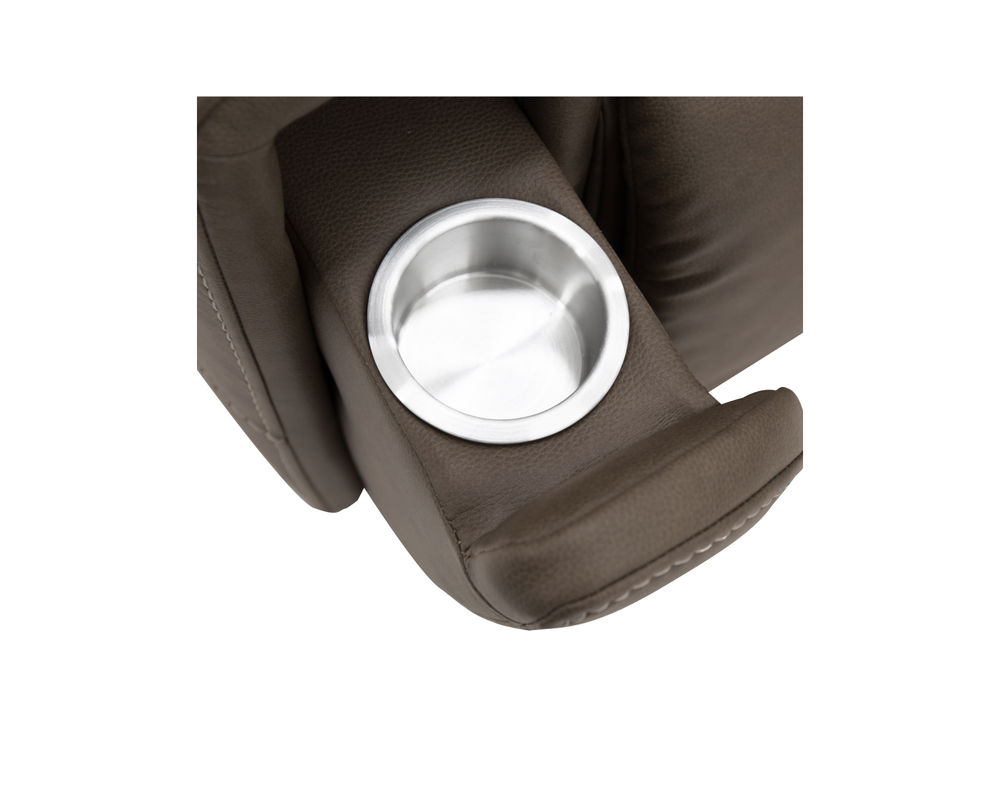 • Flared, pad-over arms with pop-out cupholders for placing beverages