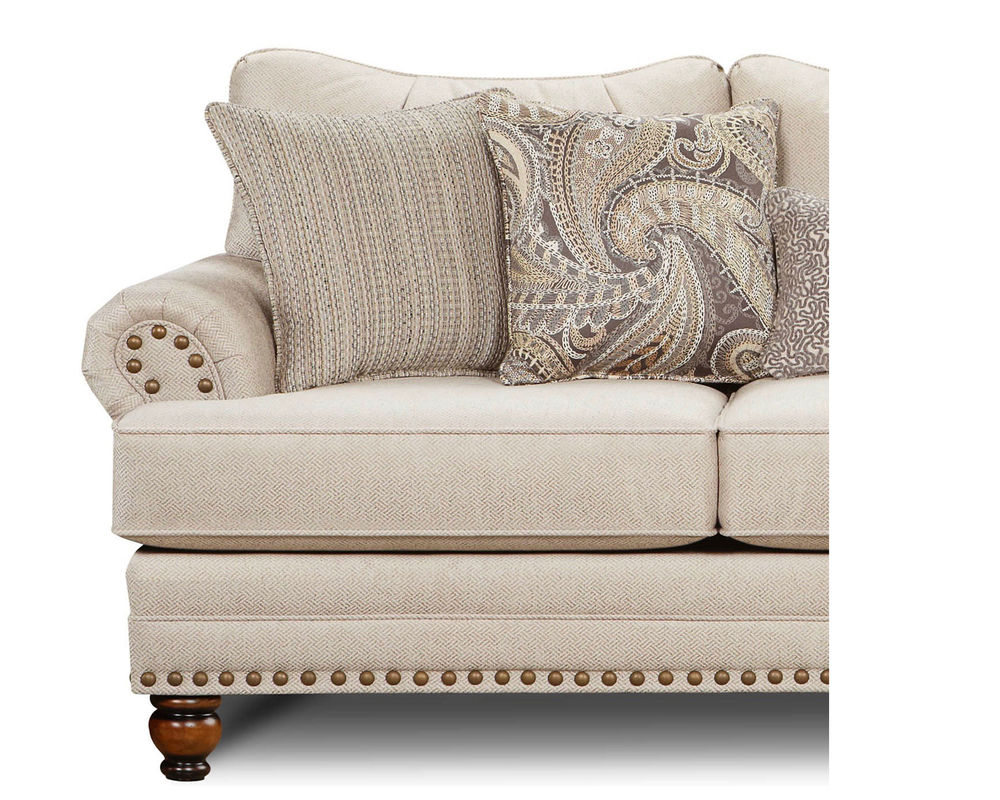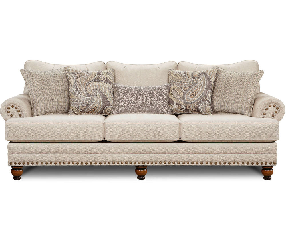 Third… what really counts is what is on the inside of your furniture. We only use hardwood and hardwood plywood frames that are corner blocked for extra support. 8.5 gauge heavy duty no sag seat springs with 1.8 density dacron wrapped cushions. Fiber filled backs and pillows with Reversible seat back and cushions and all the pillows are included.