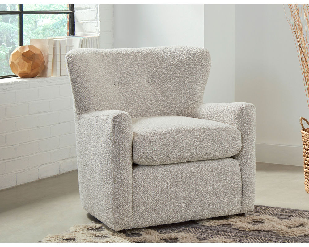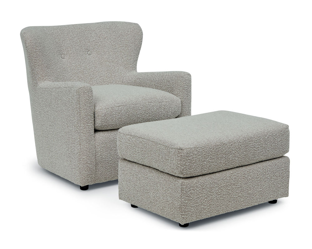 The Casimere 2000 Club Chair is the perfect addition to any room. This versatile transitional accent chair is adorned with two accent buttons in the back for a touch of elegance. The subtle wingback provides a nice flair while the slimline, lightly padded arms provide comfortable support. The solid foam, reversible seat cushion offers superior comfort and is available in over 100 fabrics to create the perfect look for your space. An optional matching ottoman is also available. Crafted with precision in the USA by skilled artisans, this chair is available with a swivel glider base for added convenience. Whether you're looking for a comfortable spot to relax or a stylish piece to complete your décor, the Casimere 2000 Club Chair is the perfect choice.