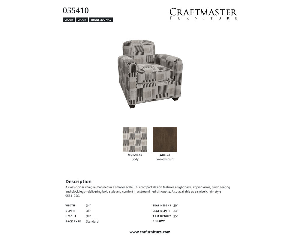 NOTE: Due to dye lot variations from fabric suppliers, Craftmaster Furniture cannot guarantee dye lot matches unless products are purchased simultaneously.