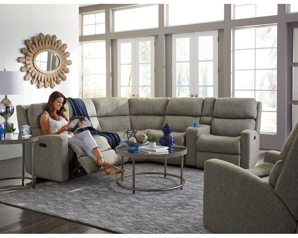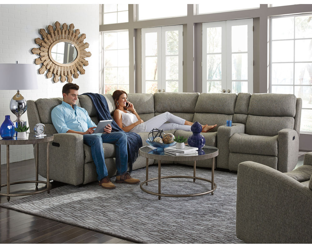 Introducing the Catalina Reclining Sectional, the perfect combination of comfort and sleek modern design. The contoured seating offers body-hugging comfort that will last year after year. The divided back cushions and fully padded footrest make it even more luxurious. It's sloped arms and deep-set back wings create a modern look, while its mixed seating options give plenty of space for friends and family to relax. Easily change angles from upright to fully reclined with smooth reclining mechanisms. With a large selection of custom fabrics and power recline options, it's the perfect addition to any living space.