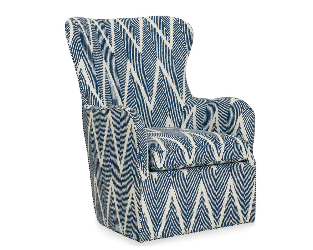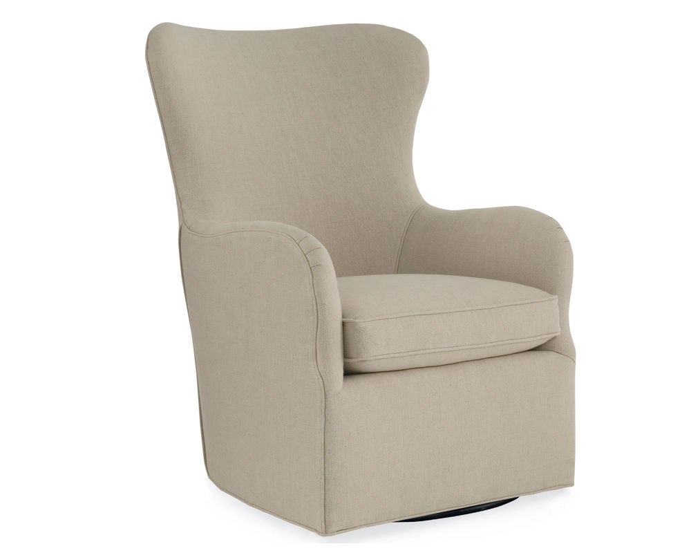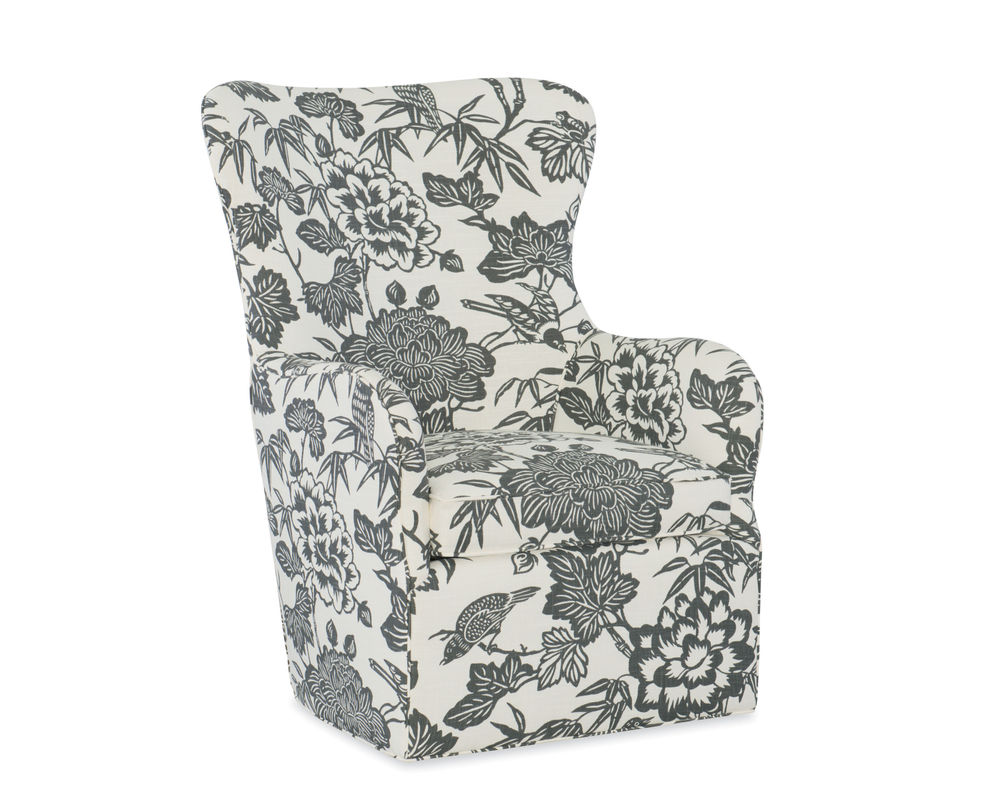 The Cayden Swivel Chair by CR Laine epitomizes comfort and style. This stunning chair boasts a unique, curvy design that elevates any living space. With its high back and English arms, the chair provides ample support for your back and arms, making it the perfect spot to relax and unwind after a long day.