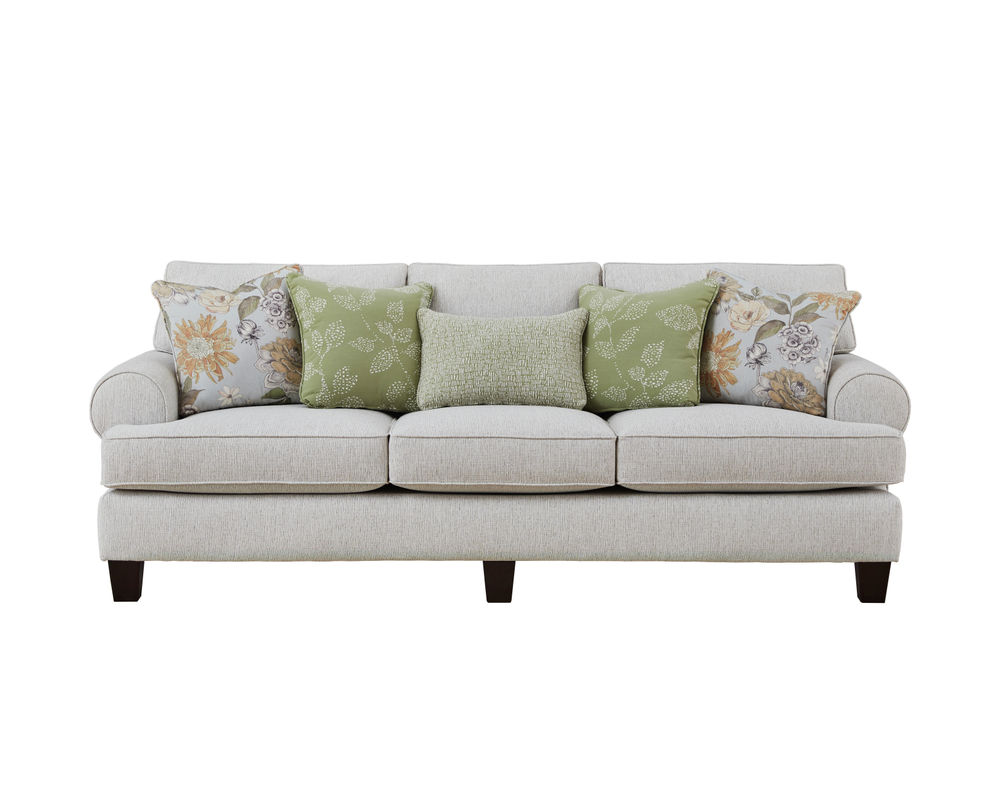 Introducing the Celadon Salt 98" Sofa, a versatile canvas for your living space. This transitional sofa, with its clean and sleek design, offers two pairs of contrasting pillows and a kidney pillow, allowing you to unleash your creativity in room decoration. Mix and match the pillows to create a new look whenever you desire, giving your space a fresh and updated feel.
