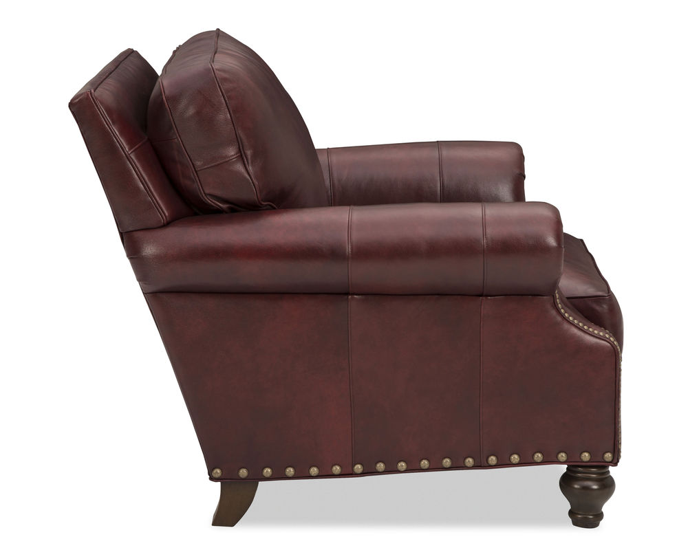 This Alamo 7623 Leather Chair is the perfect addition to any living space. Its ultra-plush Blend Down Coil seat cushions, semi-attached box border backs, and classic turned legs provide unparalleled comfort and support. The paneled arms and bottom rails are accented with nail head trim, giving the chair a modern, yet timeless look. Whether you're snuggling up for a nap, catching up on your reading, or just looking for an inviting place to relax, this chair will provide the perfect spot. It's sure to be a favorite in your home for years to come.