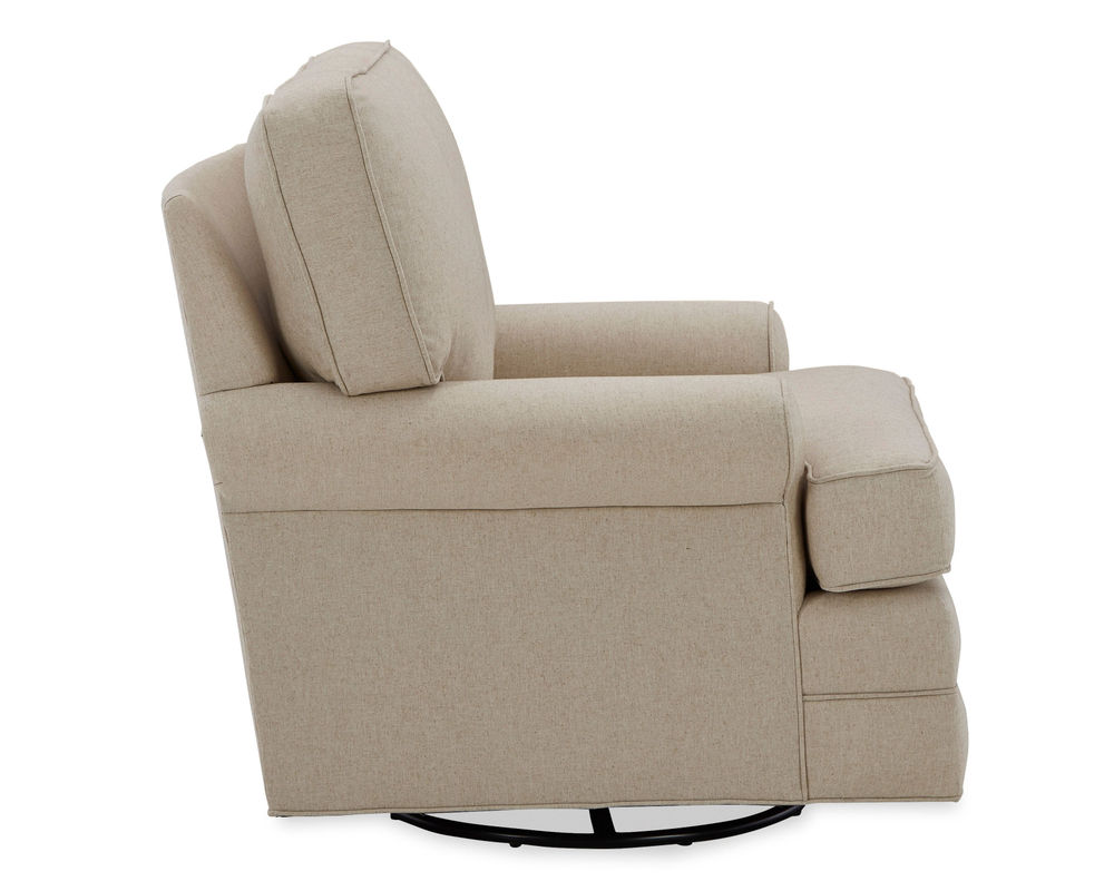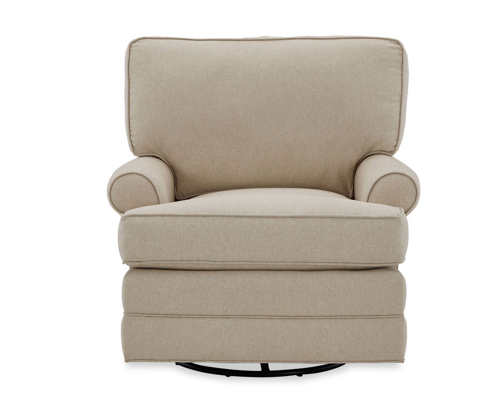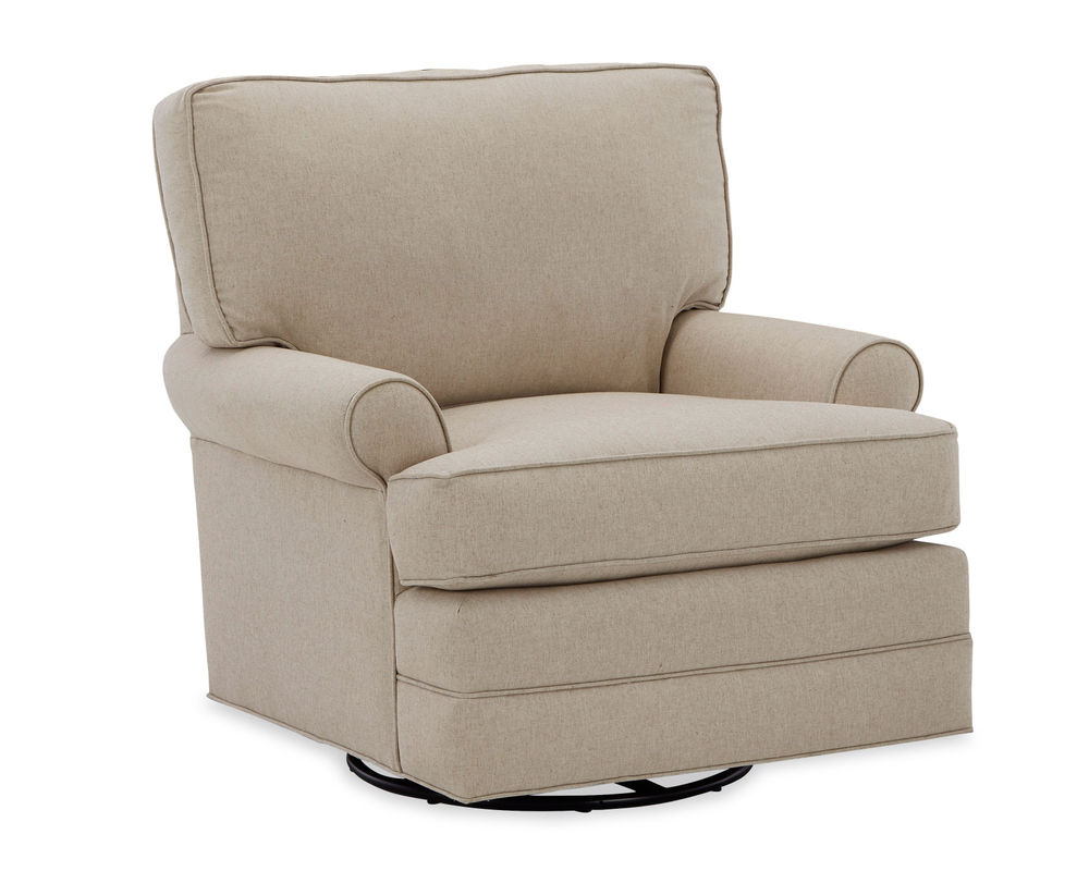Make a statement and bring a touch of classic charm to your space with the Fanny 0110 Swivel Chair. This classic sock arm swivel chair features a loose box border back pillow and welted cushion, giving it a classic look that will fit in seamlessly with a Farmhouse, Cottage, Traditional, or Modern décor. Its swivel glider design allows for maximum comfort and support while its high-performance fabrics make it easy to keep looking its best. Enjoy sinking into this chair and easily find yourself relaxing in its wonderfully simple style.