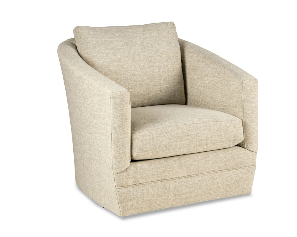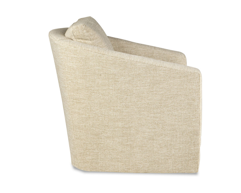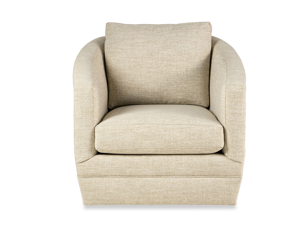 The Florence 68710 Swivel Chair is the perfect addition to any home. It's modern barrel-back shape offers a sophisticated look that will be the perfect complement to any living room or office. With track arms and an attached back pillow, this chair is easy to maintain and comes as a swivel glider. You can choose from a wide range of high-performance fabrics, so you can find the perfect fabric to match your style and décor. Whether you want a bold, bright color, or something more subtle, you can find the perfect fabric to suit your tastes. This stylish chair is sure to be the centerpiece of any room and provides years of comfortable seating.