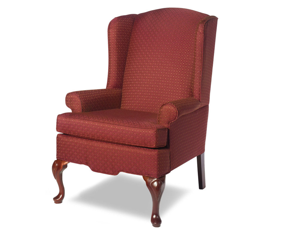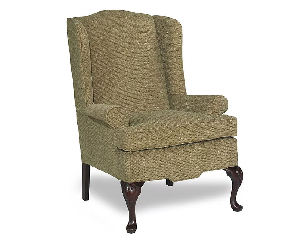 A timeless wing chair to accent a traditional setting! This elegant piece features Queen Anne legs with delicate carvings, a classic rolled arm, and subtle shaping on the front rail. Over 100 high performance fabrics and 15 wood finishes.