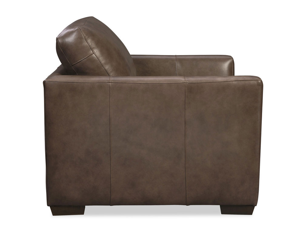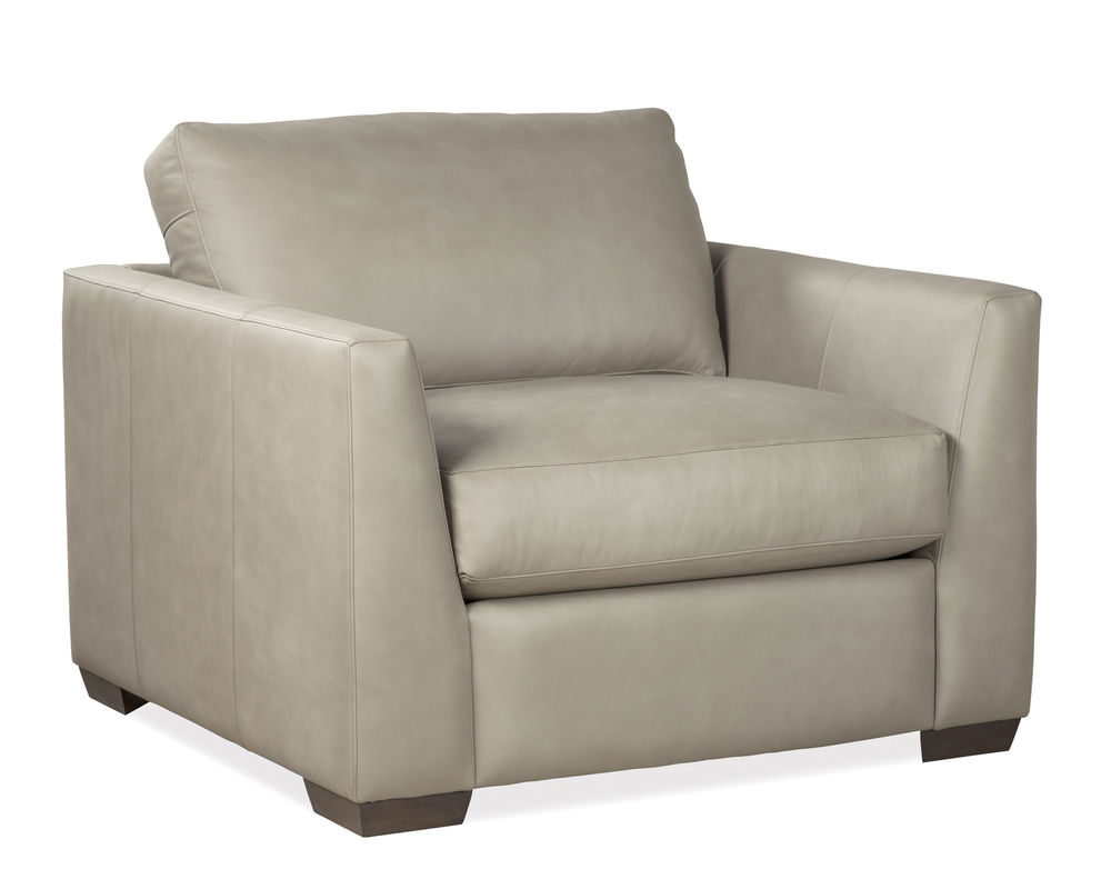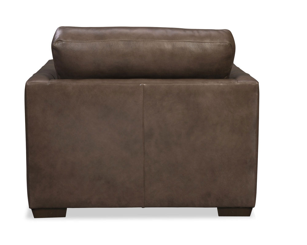 This modern Omaha 9839 Leather Chair and a Half is the perfect addition to any stylish home. Its generous scale and Blend Down Coil cushion provide plush, comfortable seating for the whole family. The architectural shaping and low, deep seating make it both comfortable and on-trend. The French seaming, semi-attached box border back pillows, and low block legs complete the look. This high-quality chair is made of 100% top-grain leather, ensuring lasting durability. This luxurious chair is also available with a matching loveseat, chair 1/2, and ottoman, so you can complete the look with style. Bring the Omaha Leather Chair and a Half into your home for a modern look and cozy comfort.