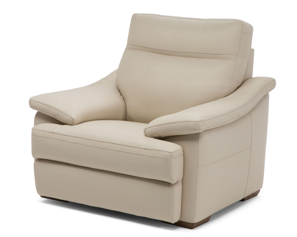 Enjoy the sleek contemporary furniture style with the classic leather look you love with the Pazienza C012 Leather Stationary Chair. This natural leather upholstery is luxurious and soft, providing a comfortable place to sink into after a long day. It is smooth to the touch and designed to age gracefully, but it will only become softer and more handsome as time passes. There is stitching along the top of the back cushion that provides you with a bit of support against your head and neck. Slanted saddle arms encompass both sides of the chair for a comfortable resting place.
