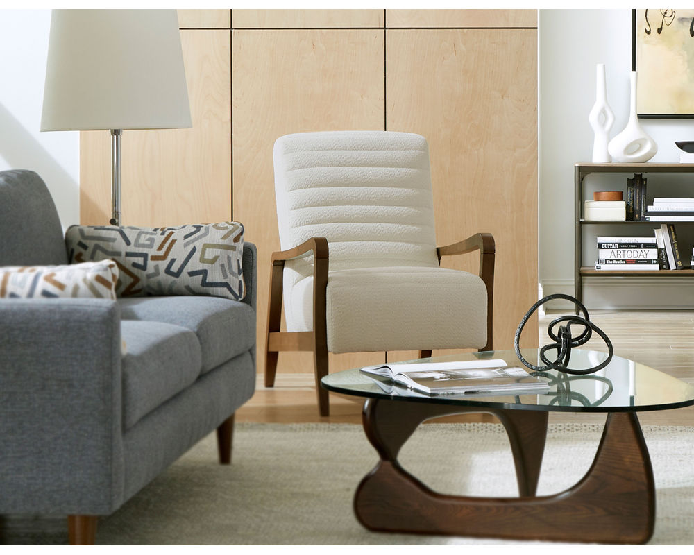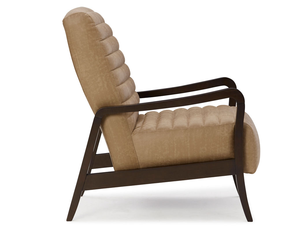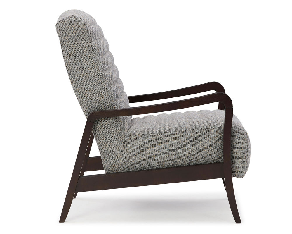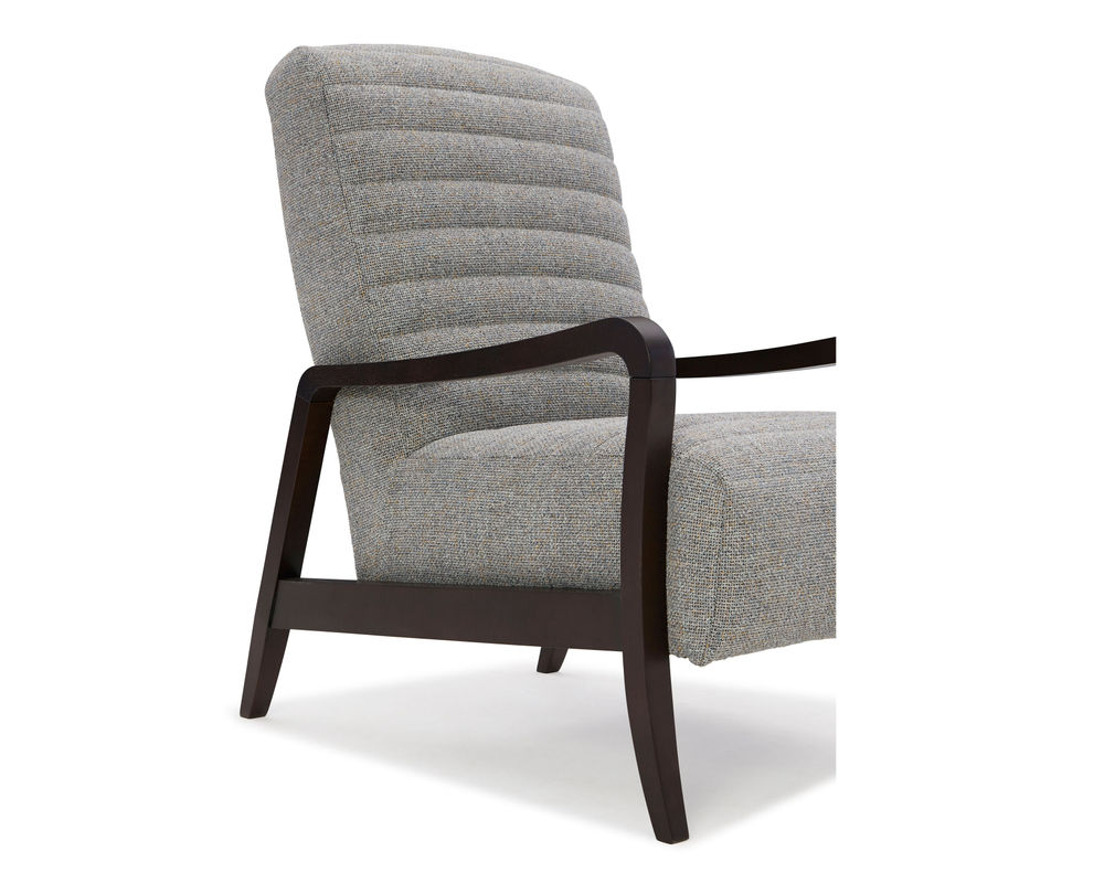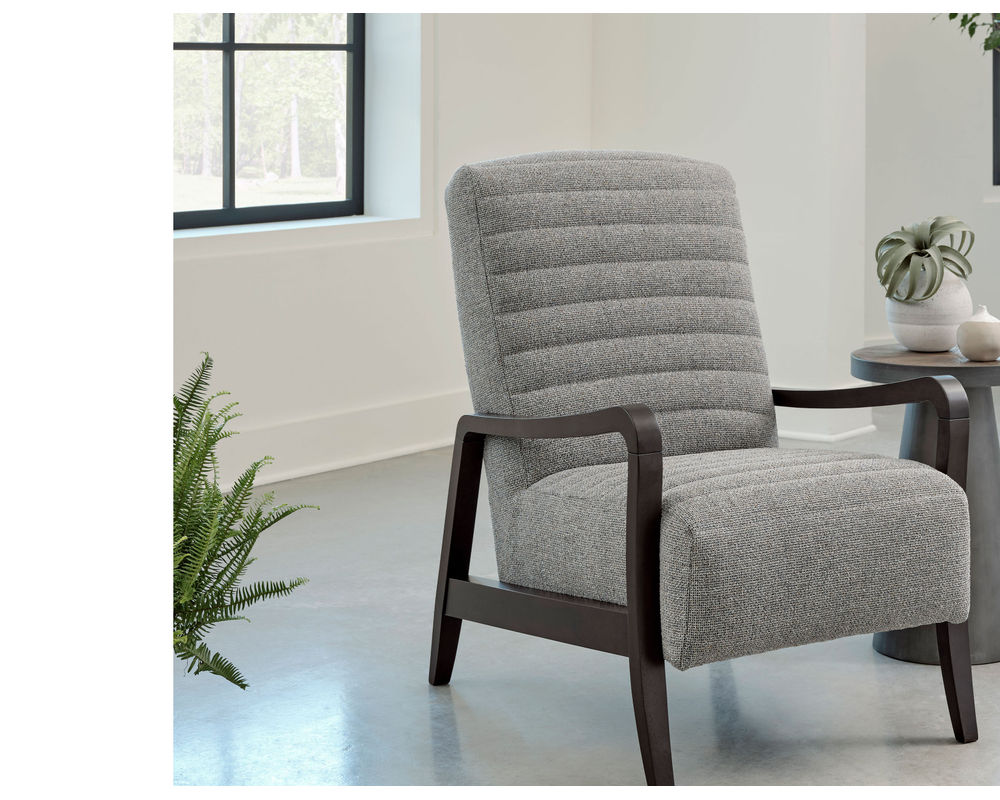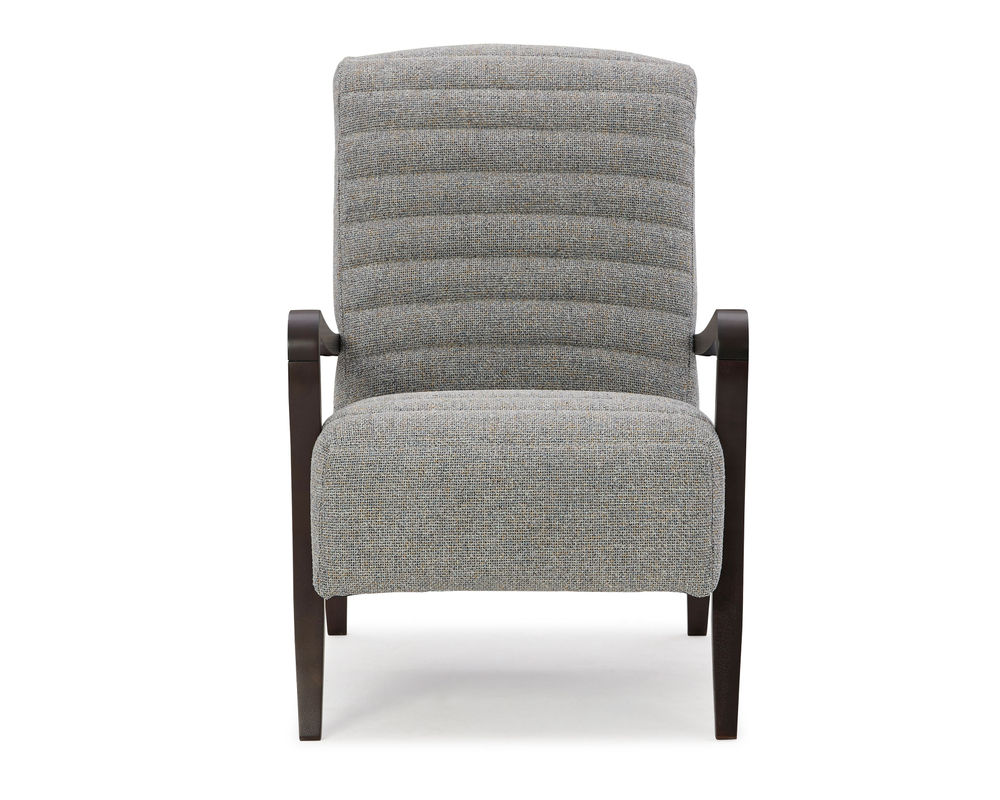 The Emorie 3120 Accent Chair is sure to add a touch of sophistication and style to any room. This chair features sleek lines and a curved wooden frame which offers a striking contrast that will captivate the senses. The tall, solid foam back and channel tufting on both the seat and back create an eye-catching design. You can choose from 100 different fabric choices, so you're sure to find the perfect match for your space. The wooden legs are available in three finishes - Dark Walnut, Espresso, and Riverloom - which offer a wide range of styling options. This chair is crafted with care in the USA by experienced craftsmen, ensuring that your purchase is of the highest quality. Add the Emorie 3120 Accent Chair to your home for a timeless, sophisticated look.