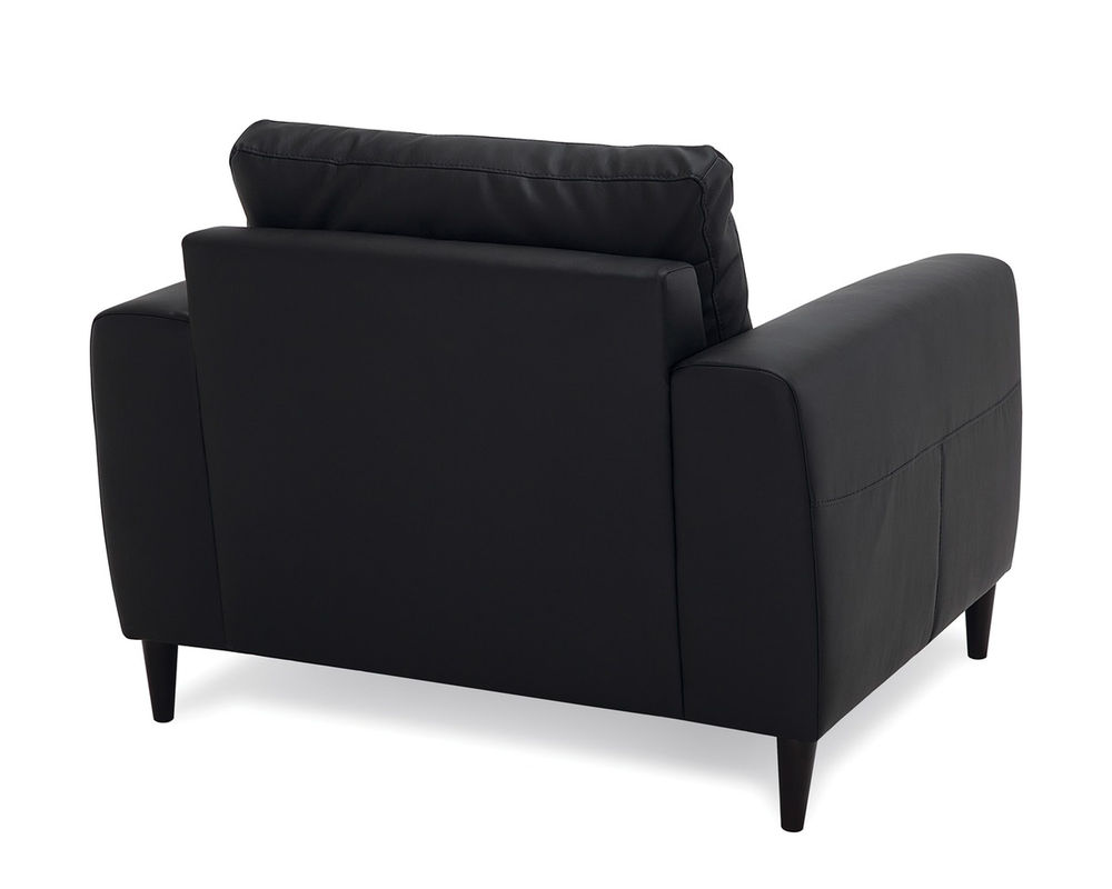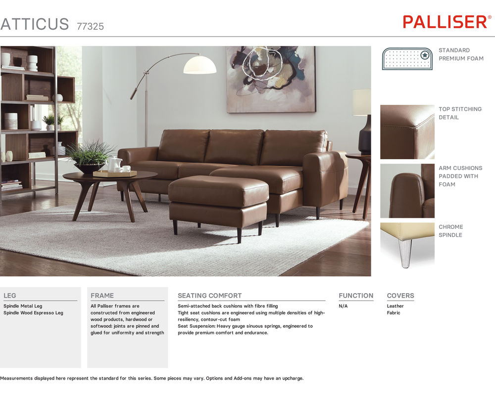 A comfortable classic, the Atticus collection introduces a modern approach to traditional comfort. With an updated perspective on lounge seating, Atticus not only provides comfort but also a trendy, modern design. The streamlined contemporary design enhances the appeal of visibly plush cushions, making it a perfect fit for any modern interior. Available in multiple sofa and sectional configurations, the Atticus collection can be adapted to suit any space. Atticus' blown fiber-filled back cushions and high-resiliency foam seat create the comfort you can sink into. Complementing the softness of the back cushions are arm cushions padded with foam, perfect for lounging and ideal for comfort that doesn't compromise this clean-lined design. Modern, topstitching details finish off the frame, completing the refined aesthetic of this collection. A brushed metal leg accents the contemporary style of Atticus. You can't go wrong with this popular collection.