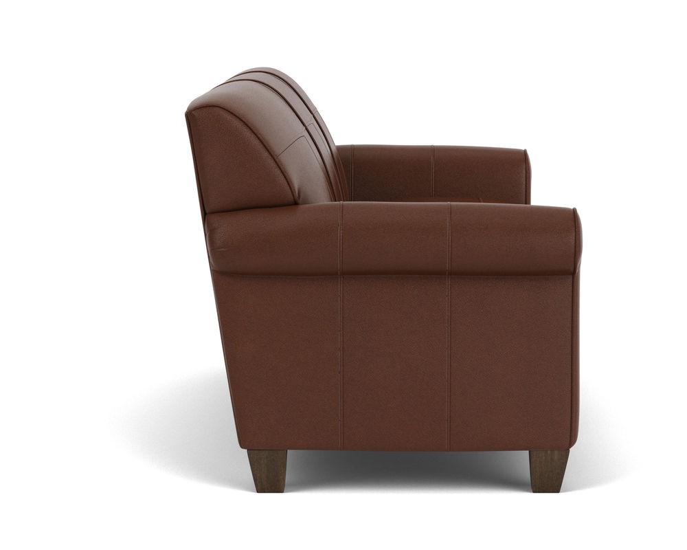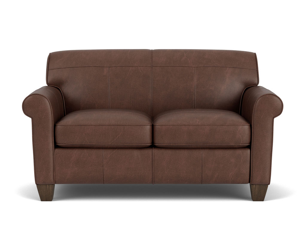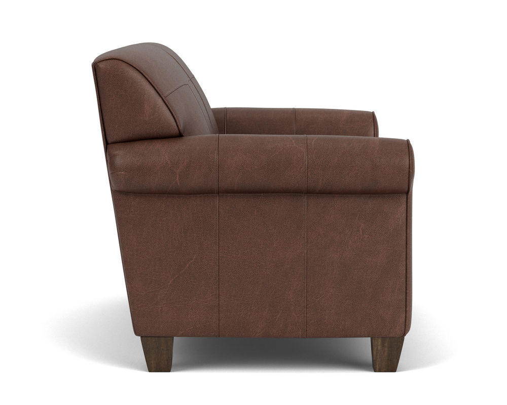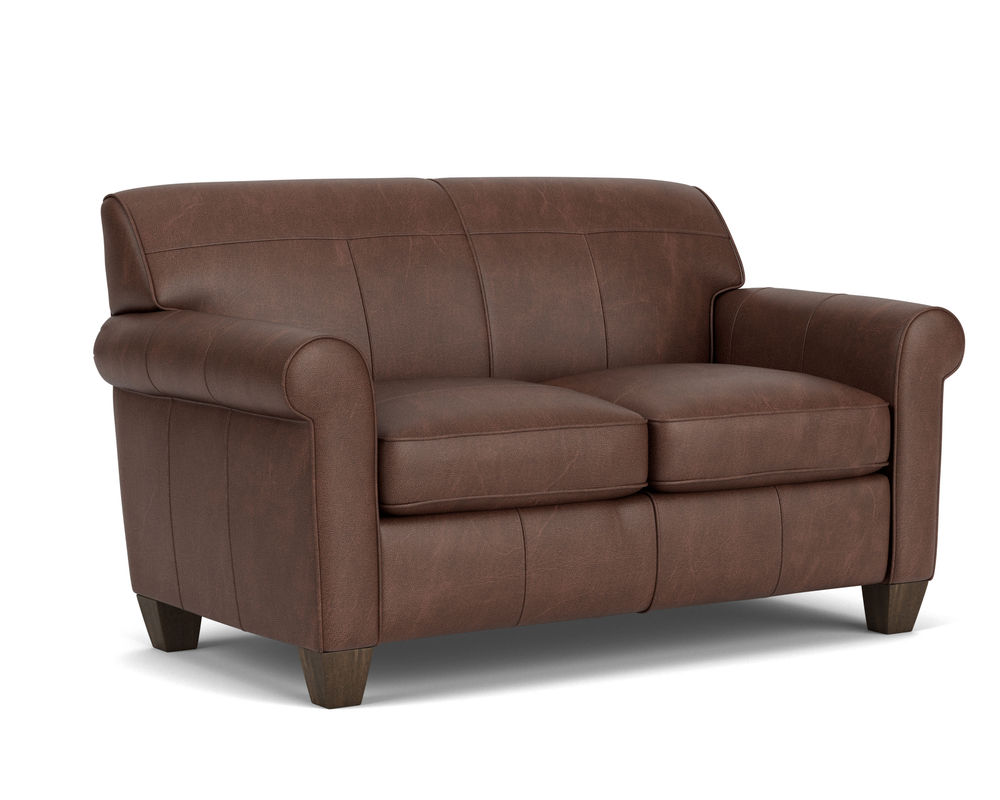 Dana is current and stylish, yet simple enough to withstand the test of time. This modestly scaled style is a great option for small spaces. With a tightly padded back, tailored roll arms and tall tapered feet, Dana fits classic touches into a streamlined design that lends openness to any space. Flexsteel only uses the finest leathers guaranteed to last. Over 40 leather colors to select from.