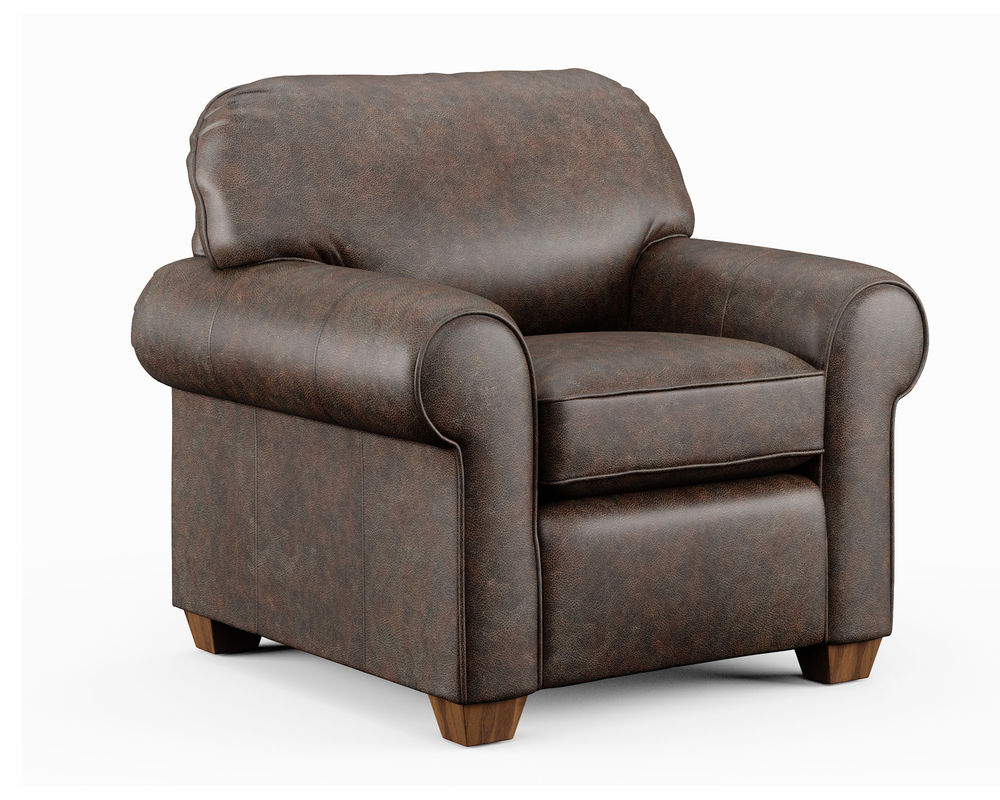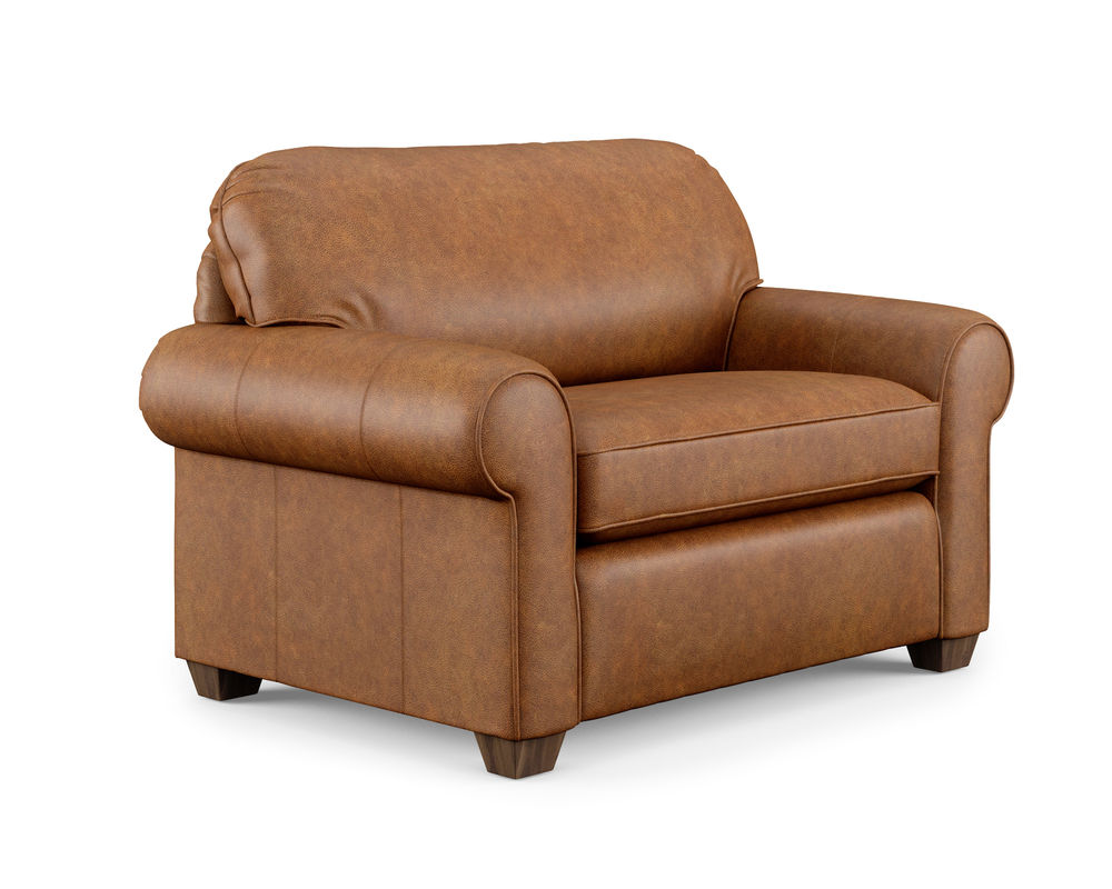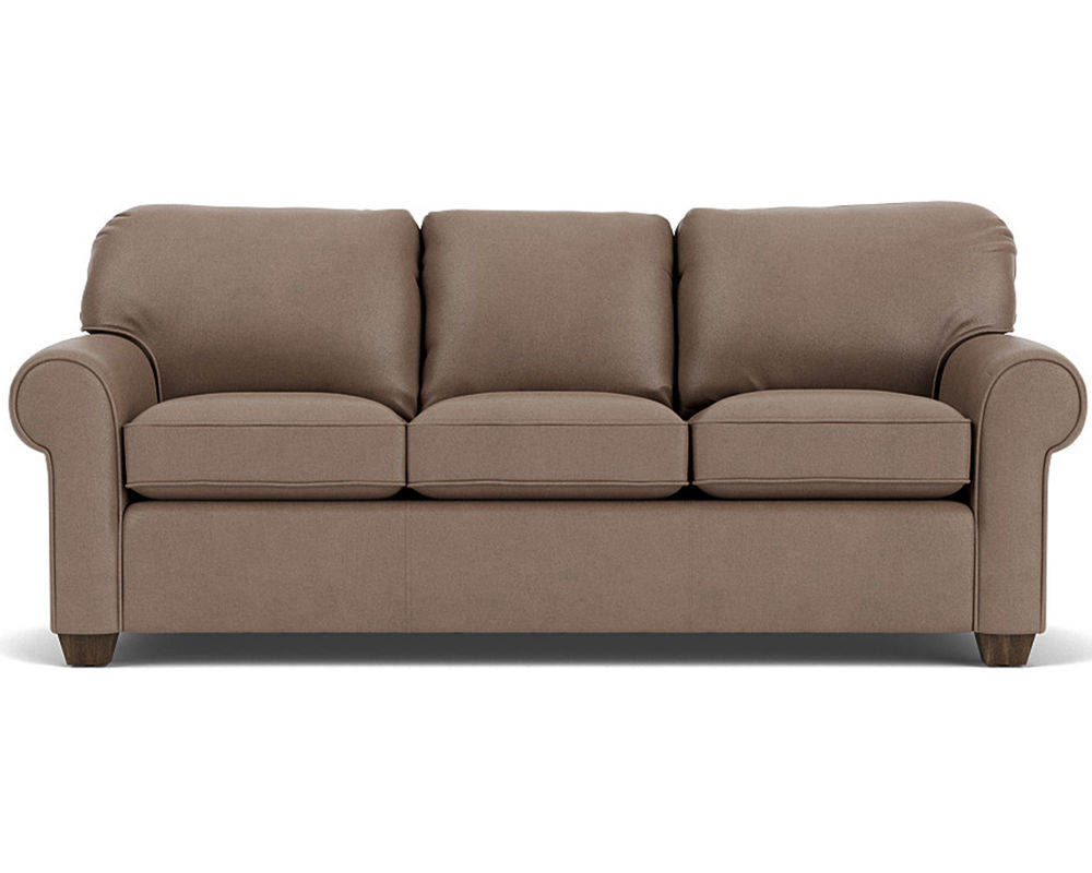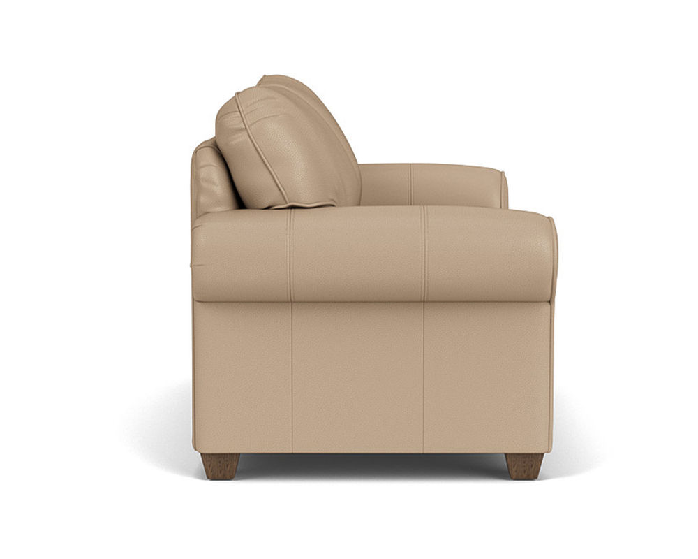 Smooth edges, rolled arms, and exposed block legs give Thornton classic appeal as a living-area staple. Welt cording trims the back and seat cushions for a finishing touch. With materials and construction backed by lifetime guarantees, this style will feel comfortable today and for years to come. Flexsteel only uses the finest leathers guaranteed to last. Over 40 leather colors to select from.